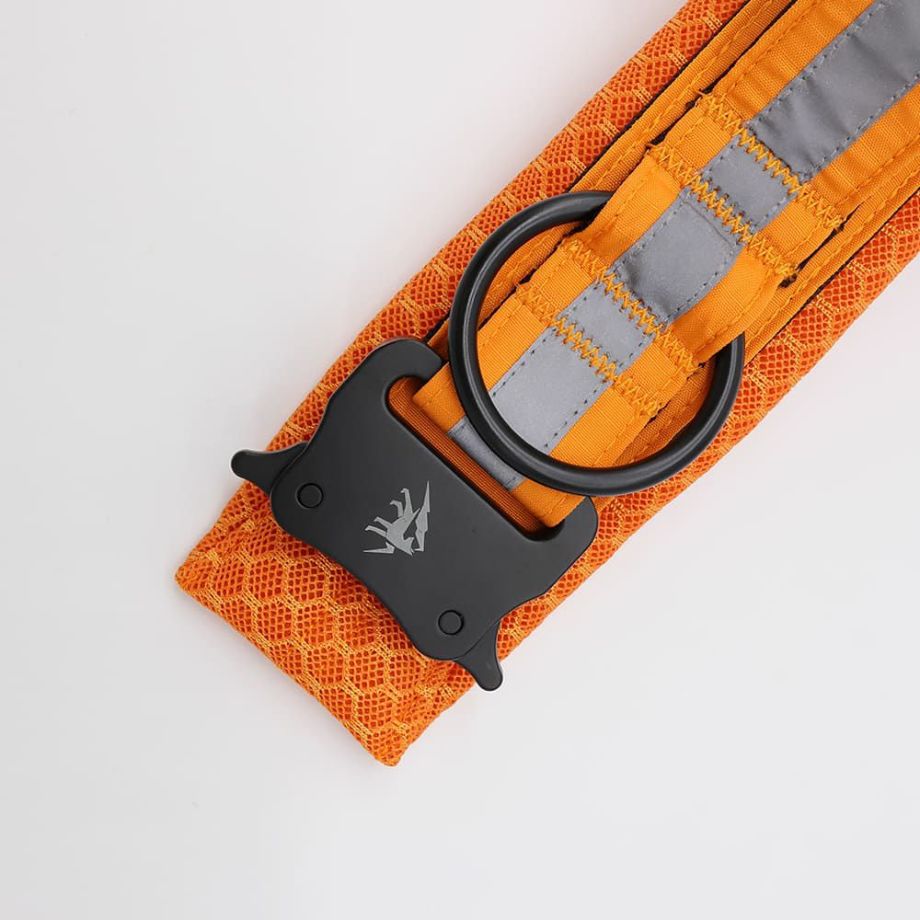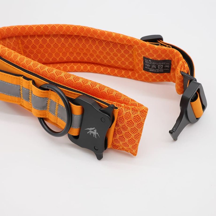 ●カラーの表面部分は耐久力の高いリサイクルナイロンウェビング、裏面には肌が擦れるのを軽減させ、快適な通気性を確保するエアメッシュ素材を採用。