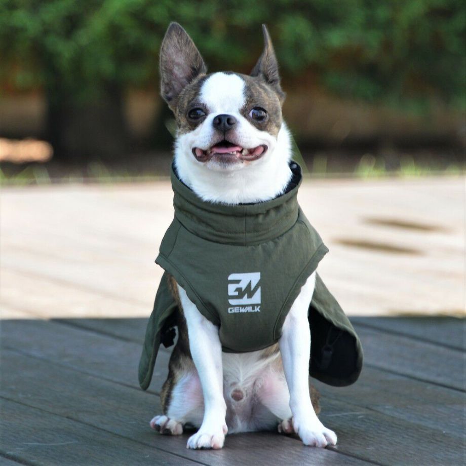 ウエストバックルと後ろ足のゴムホルダーで着脱しやすく、自由な動きを実現しています。