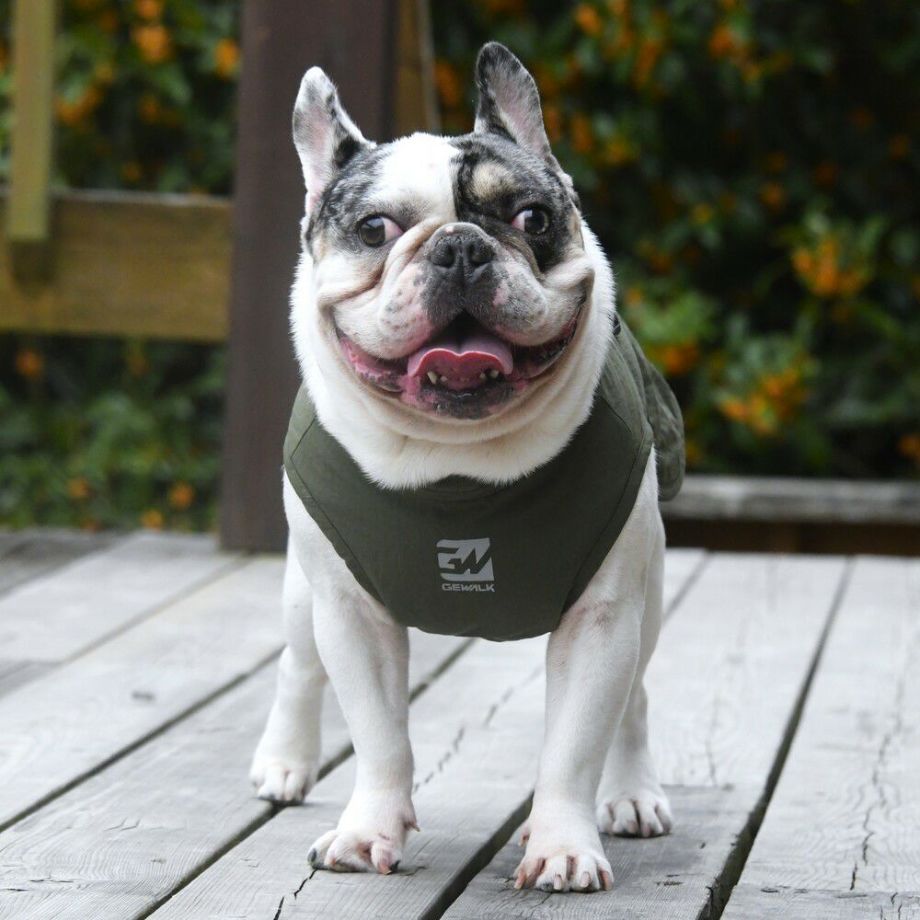 ウエストバックルと後ろ足のゴムホルダーで着脱しやすく、自由な動きを実現しています。