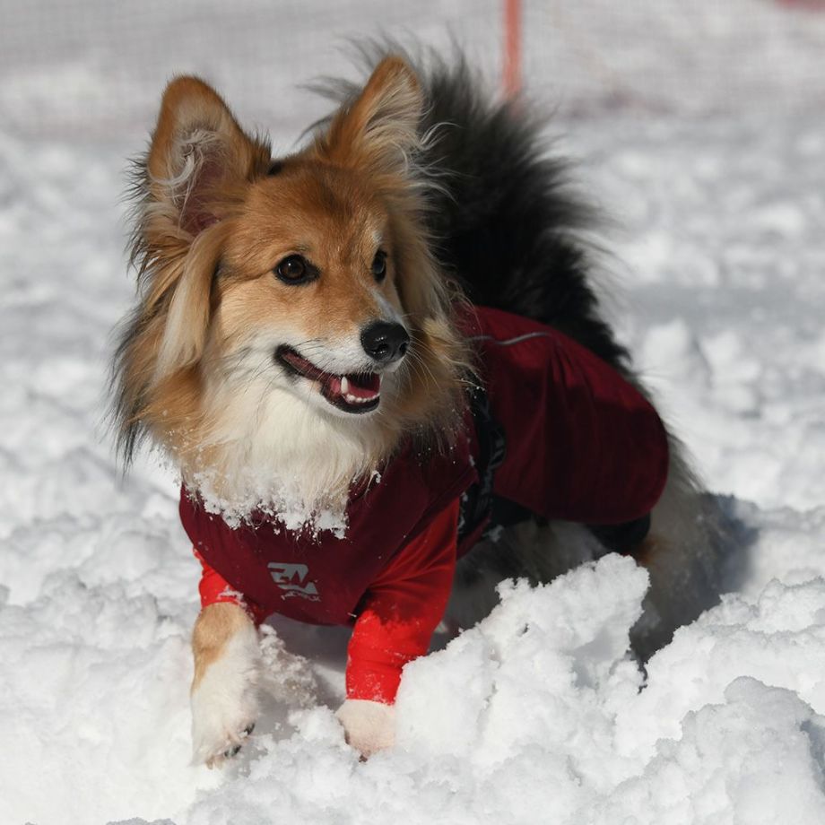 ウエストバックルと後ろ足のゴムホルダーで着脱しやすく、自由な動きを実現しています。