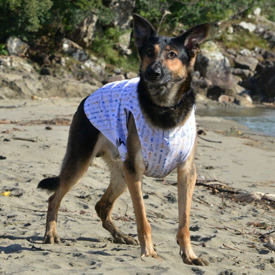 リサイクルファブリックを使用したサステナブルコンセプトのウェア。暑さや紫外線から愛犬を守るサンシェードタンクトップ!
