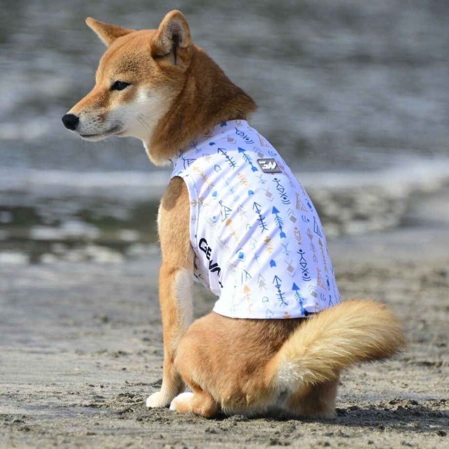 リサイクルファブリックを使用したサステナブルコンセプトのウェア。暑さや紫外線から愛犬を守るサンシェードタンクトップ!