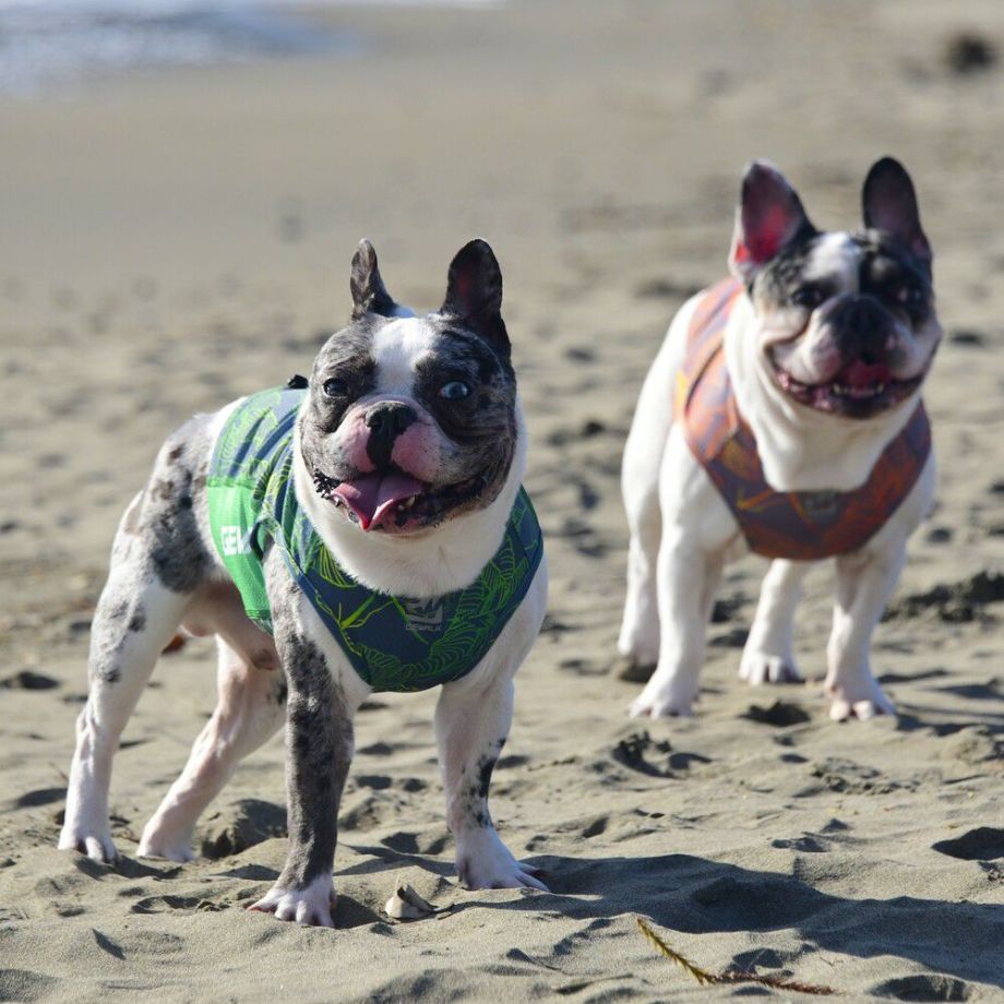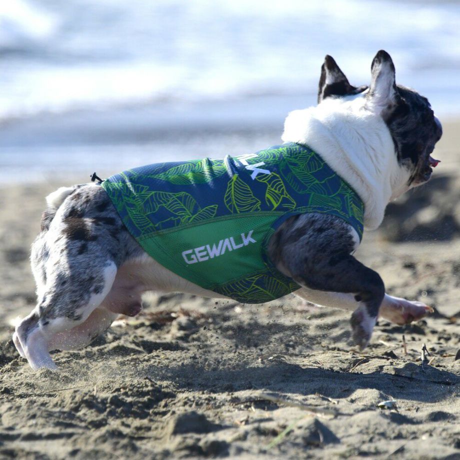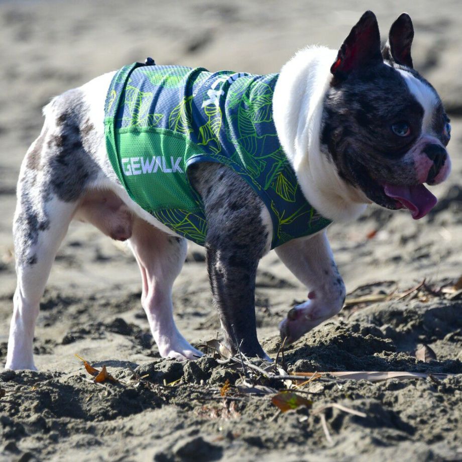 接触冷感性により涼しさが持続! LGE540 リーフ プリント アクティブ クーリング タンクトップ【BS BM BL フレンチブルドッグ専用サイズ】