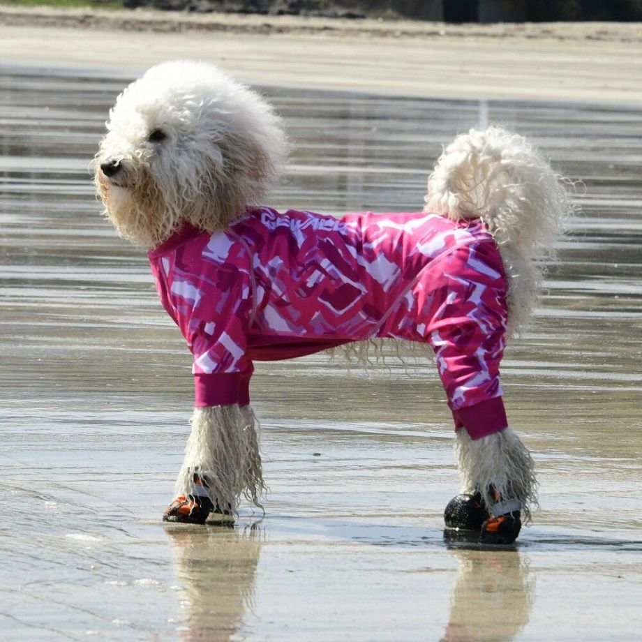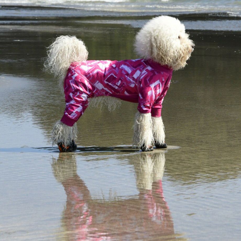 ウェア全体に撥水加工が施されており、水や泥などの汚れから愛犬をプロテクト!