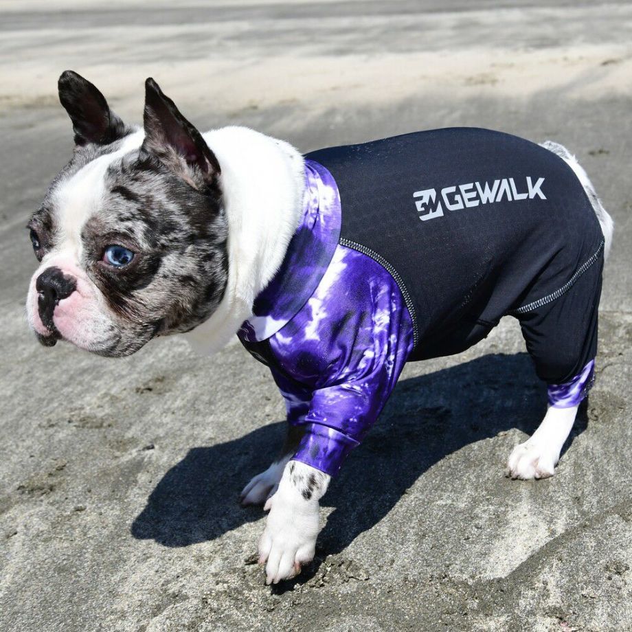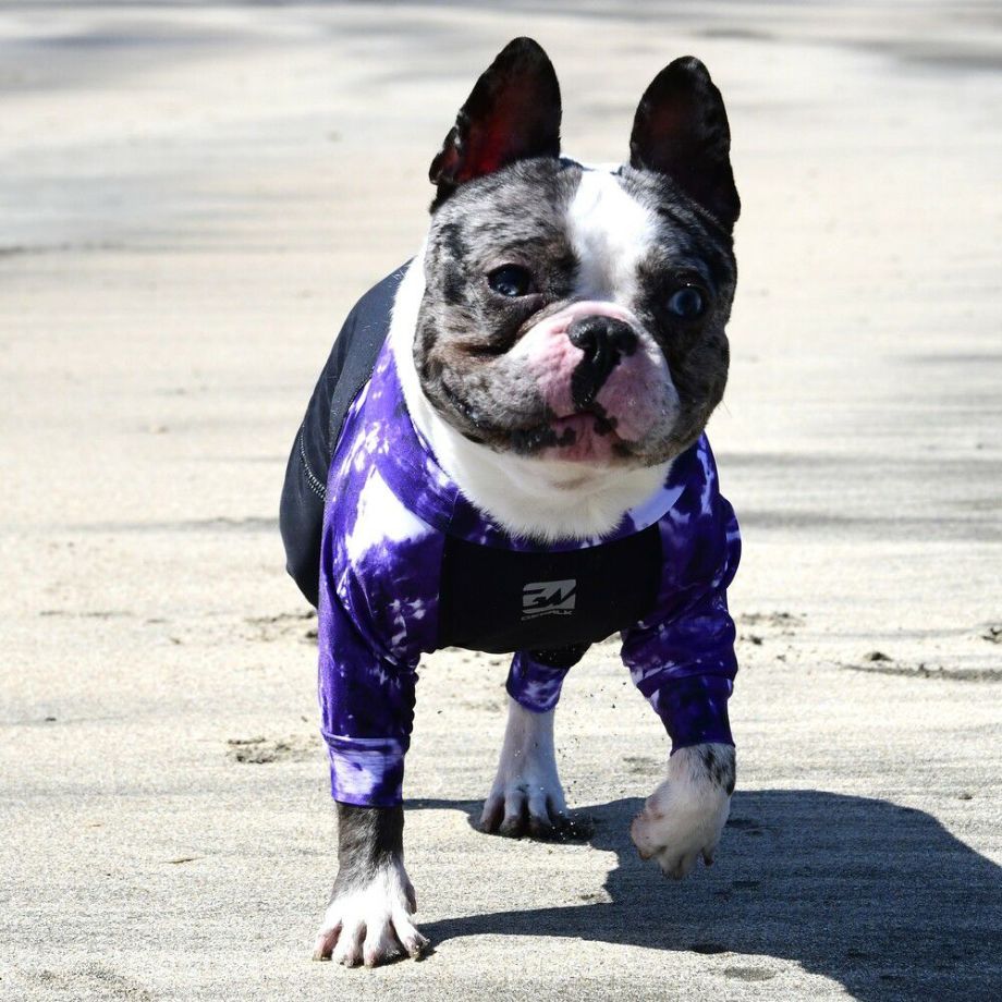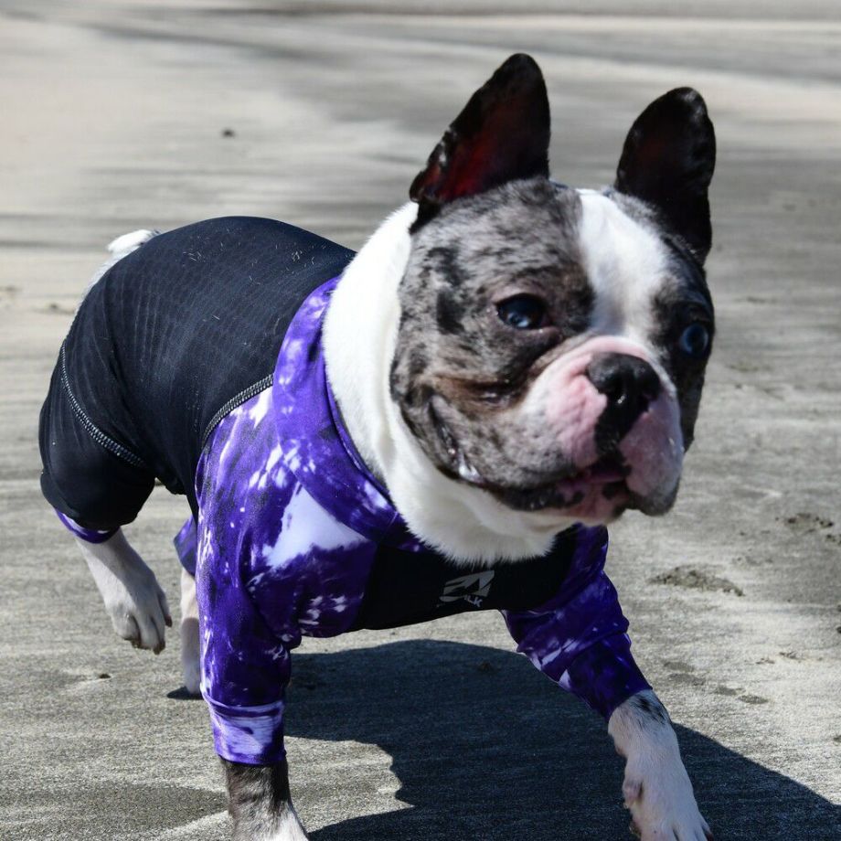 リサイクルファブリックを使用したサステナブルコンセプトのウェア。 LGE533 タイダイプリント マイナス フリージング ロンパース【BL】ブルドッグ専用サイズ ラッシュガード