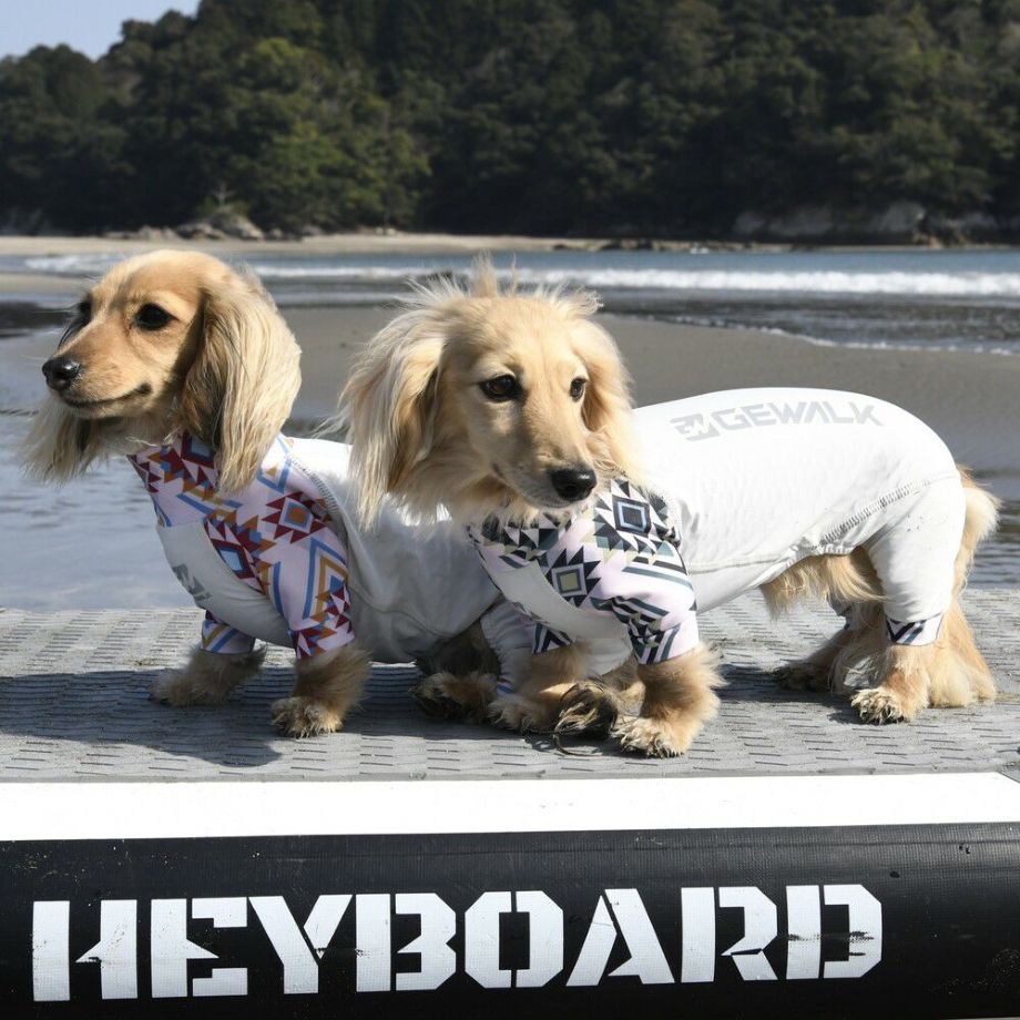 リサイクルファブリックを使用したサステナブルコンセプトのウェア。 LGE534 ネイティブプリント マイナス フリージング ロンパース【DS】【DM】ダックスフンド専用サイズ ラッシュガード