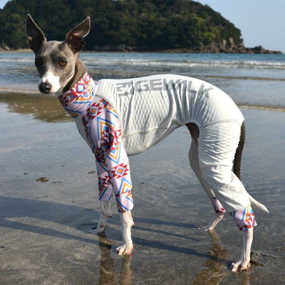 リサイクルファブリックを使用したサステナブルコンセプトのウェア。 LGE534 ネイティブプリント マイナス フリージング ロンパース【HS】【HSM】【HM】ハウンド系専用サイズ ラッシュガード