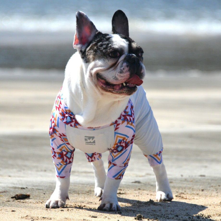 リサイクルファブリックを使用したサステナブルコンセプトのウェア。 LGE534 ネイティブプリント マイナス フリージング ロンパース【BL】ブルドッグ専用サイズ ラッシュガード
