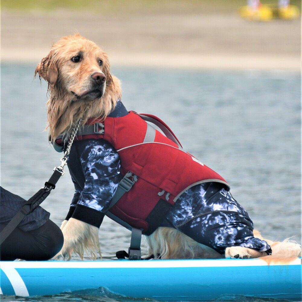 水辺での特別な体験を共に。高い浮力と撥水性を持つCORDURA ®採用のウォータースポーツ用ベスト 。愛犬と一緒にウォータースポーツを楽しむために設計 。シンプル な流線形のデザインで抵抗が少なく、高い浮力があります。