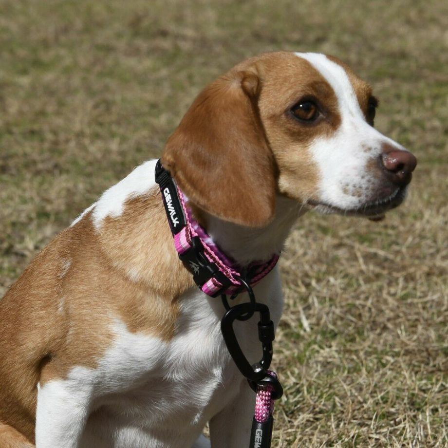 幅広のソフトパッドが愛犬の首と喉へのくい込みを軽減しソフトな着け心地。