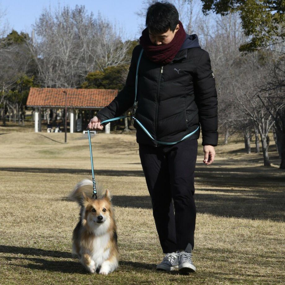 肩に斜め掛けにして使用することでハンズフリーとなり、安全性の高いロック機能付き軽量カラビナスイベルを採用しているのでリードがねじれにくく快適に散歩が可能です。