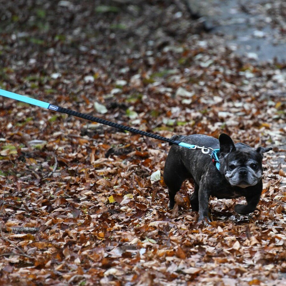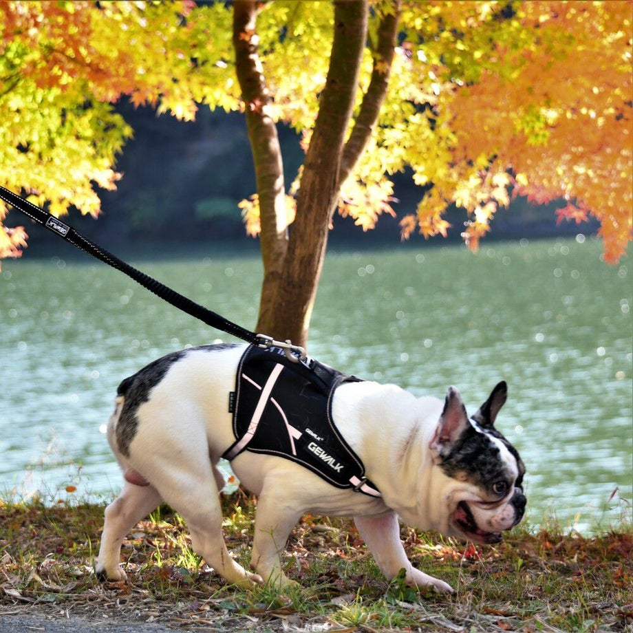 愛犬の動きに合わせて自由に伸縮するバンジーコードを使用しているので急な引っ張りにショックを吸収し、オーナー様の肩や肘への負担も軽減します。