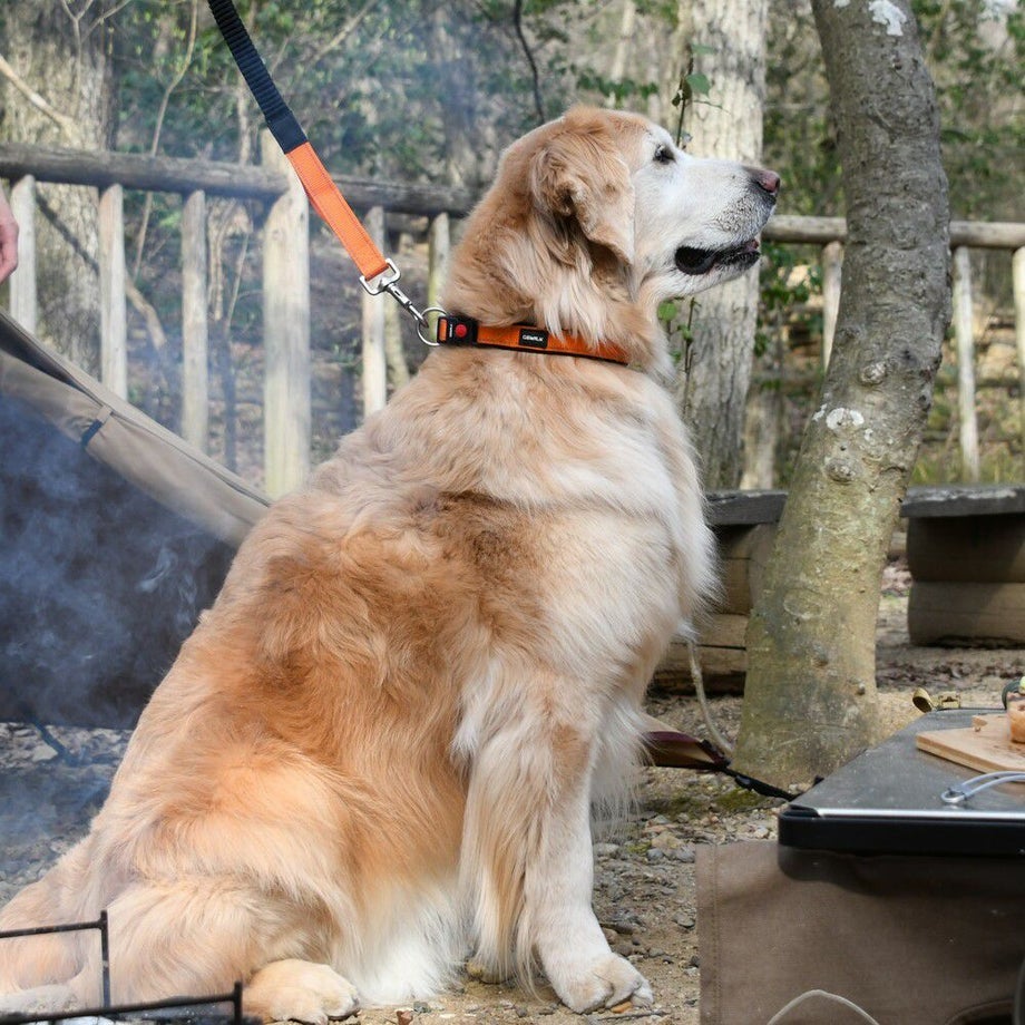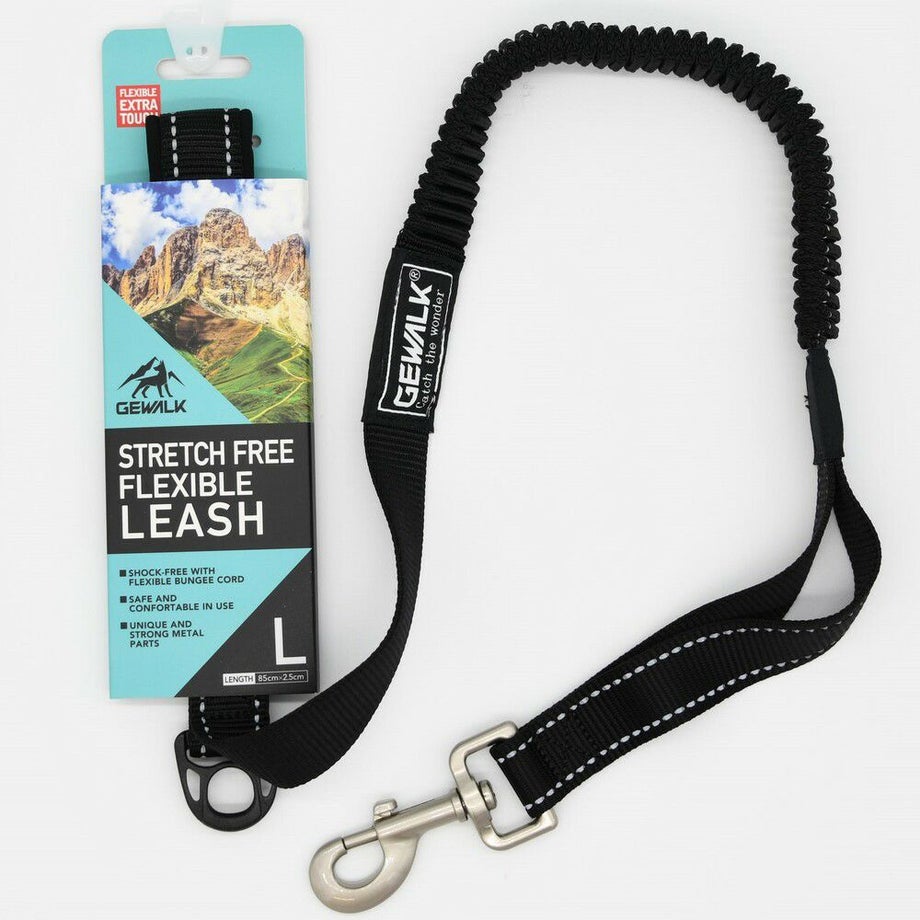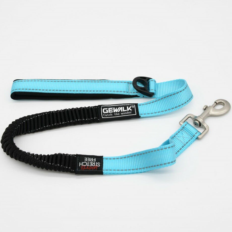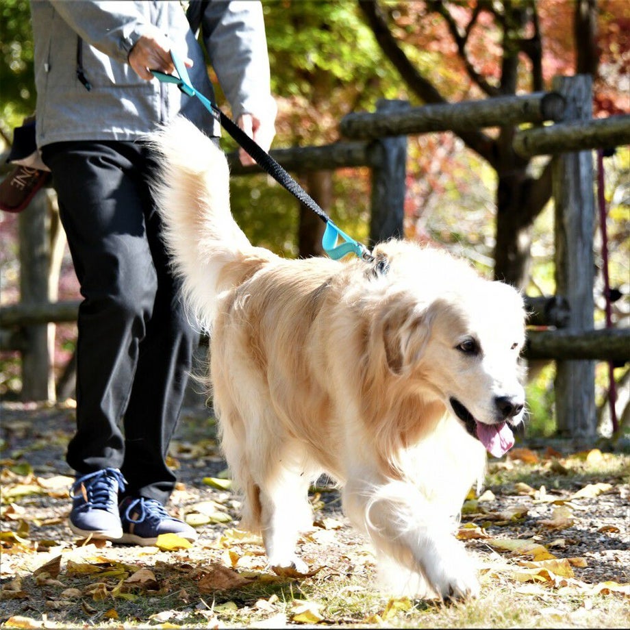 愛犬の動きに合わせて自由に伸縮するバンジーコードを使用しているので急な引っ張りにショックを吸収し、オーナー様の肩や肘への負担も軽減します。