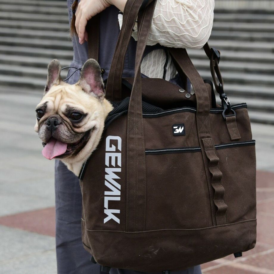 犬・猫などの小型ペットを入れて運べるコットン100%でできたキャリーバッグです。