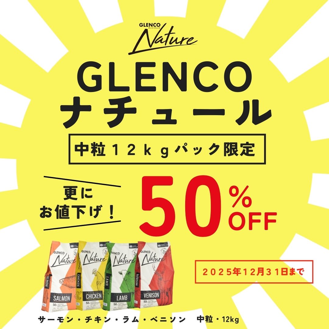 ご注文を確定時に、クーポン「GLENCOナチュール中粒12kgパック【50%OFF】」のクーポンを選択をお願いいたします。