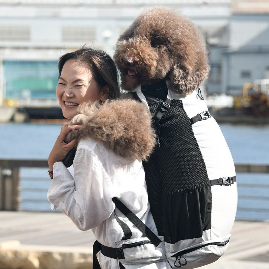 内部フレームとパッド入りのヒップベルトが装備されており、すべての体型のより多くの犬/飼い主を快適にサポートします。
