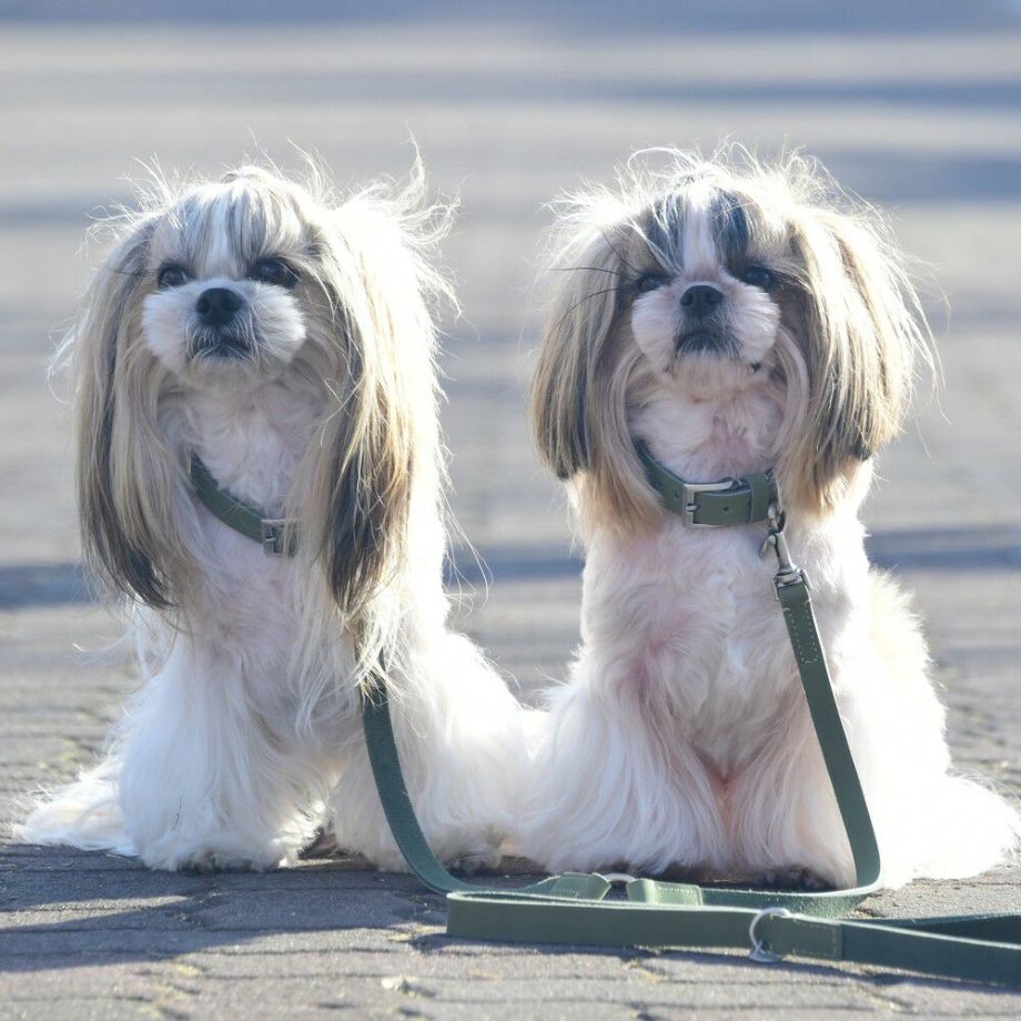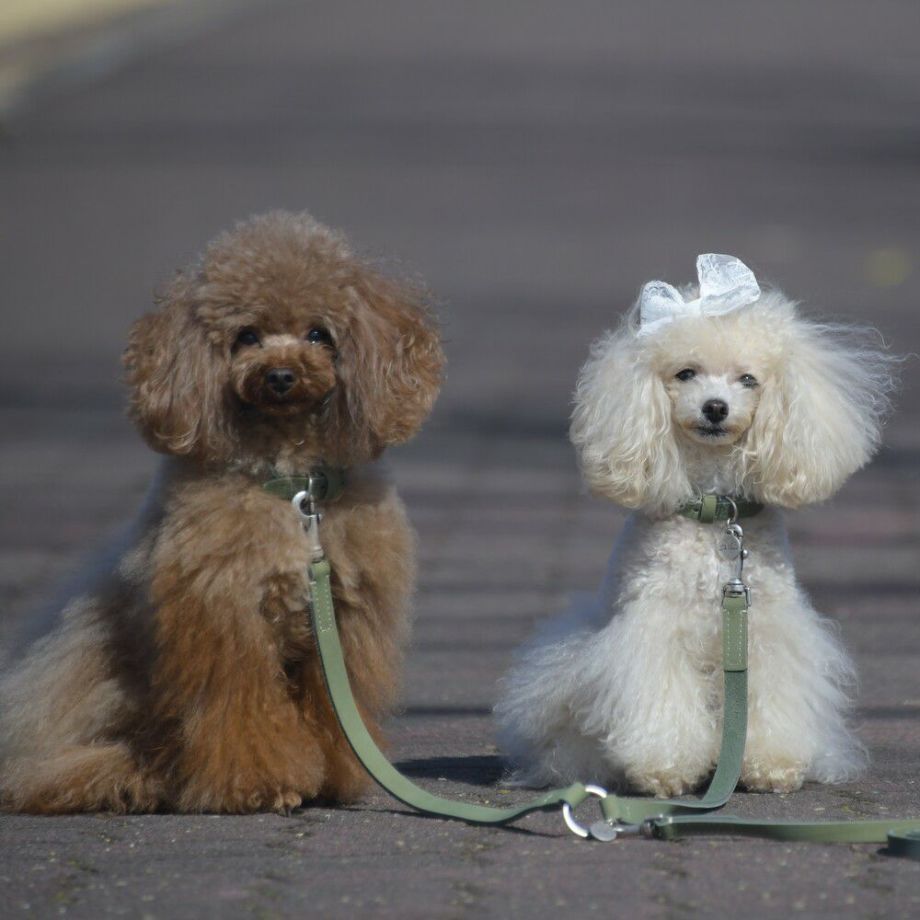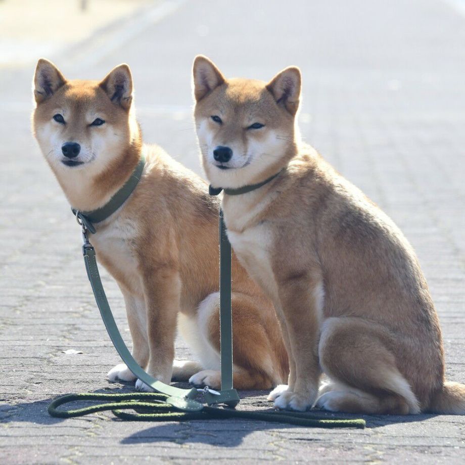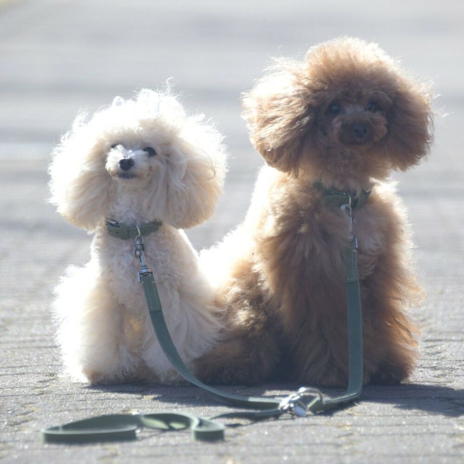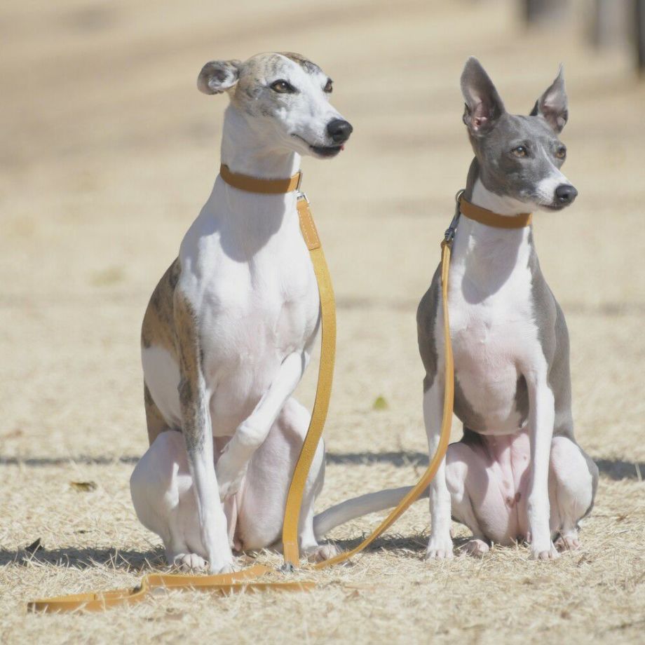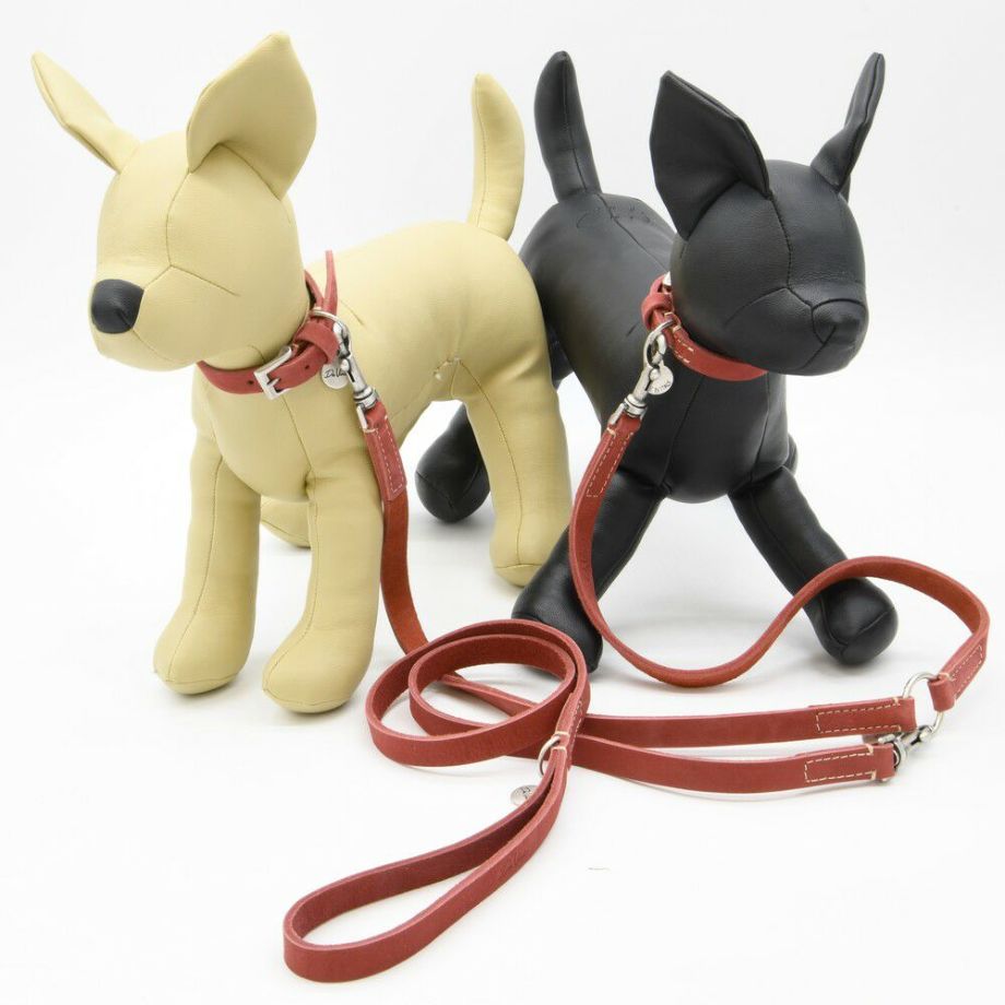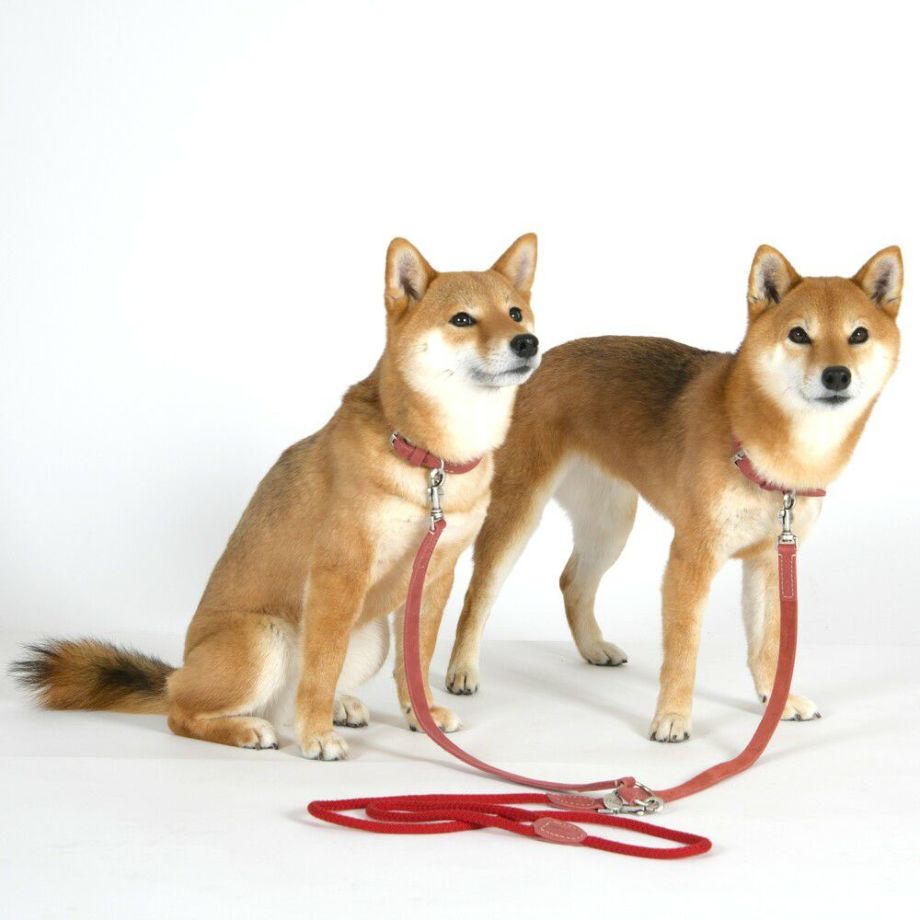 ワックスレザーカラーとお揃いのデザインの2頭用リーシュです。