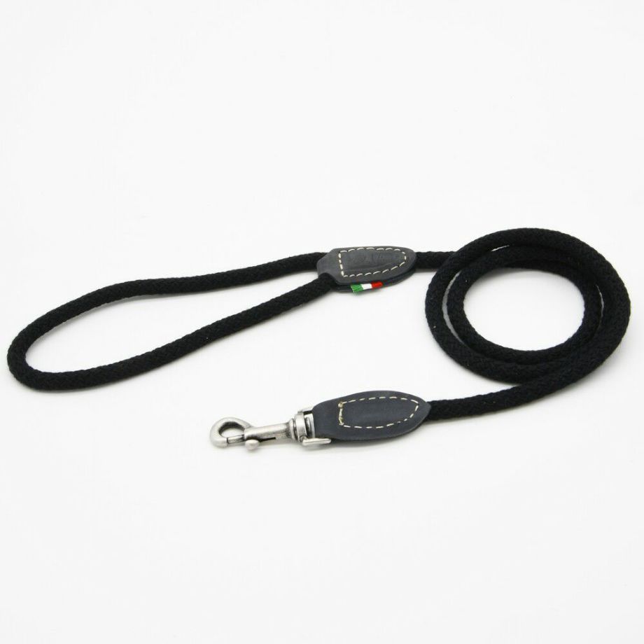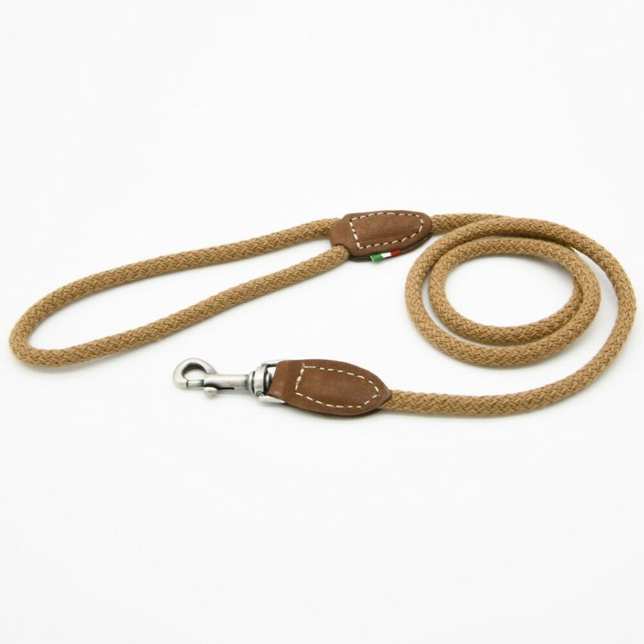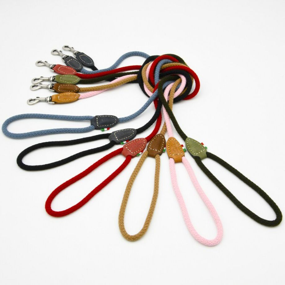 ワックス仕上げの牛革と丈夫なポリコットン・ロープの組み合わせにより、このリードは特に屋外での使用に適しています。実用的で扱いやすく、長時間の散歩に最適です。