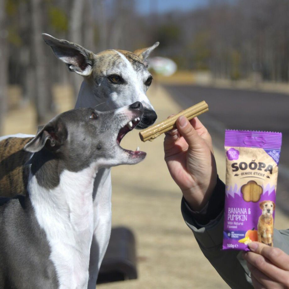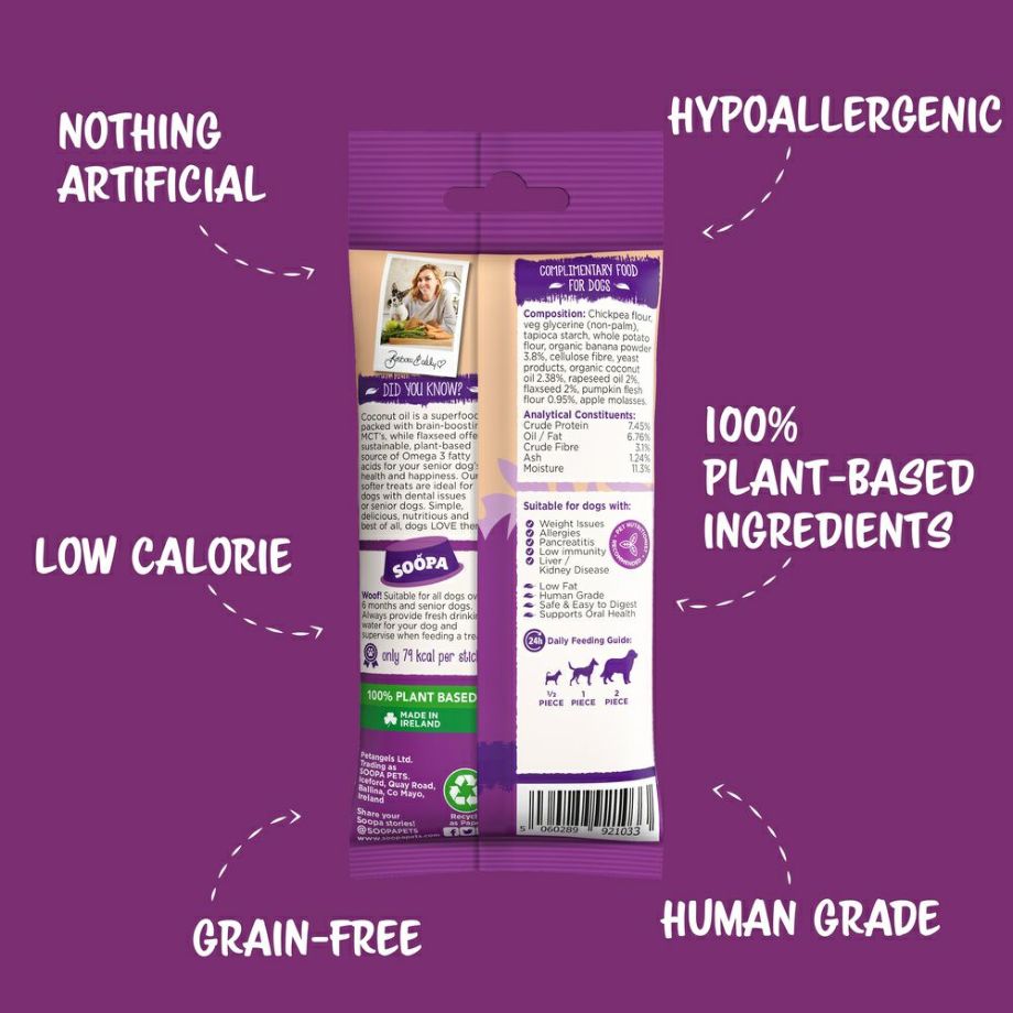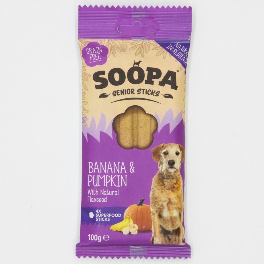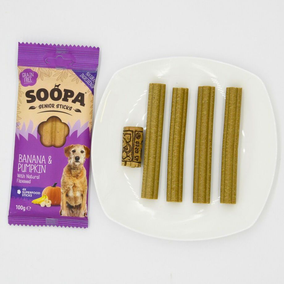おいしくて健康にも良い犬用おやつ SOOPA バナナ パンプキン アンド フラックスシード スティック フォー シニア ドッグス