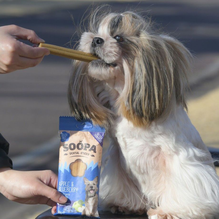 Soopaデンタルスティックは、噛むことが大好きな愛犬のための低刺激性の穀物不使用おやつです。