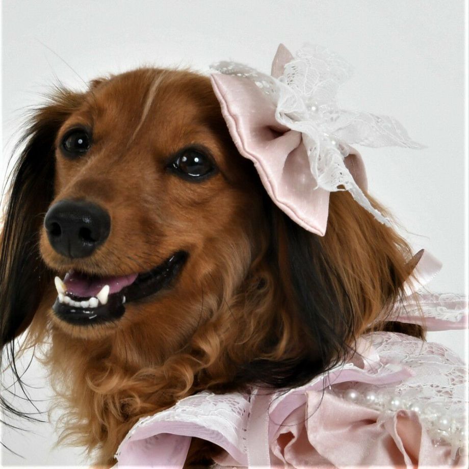 上品な色目はピンクとターコイズ、お手持ちのドレスにも合わせやすいお色目になっております。