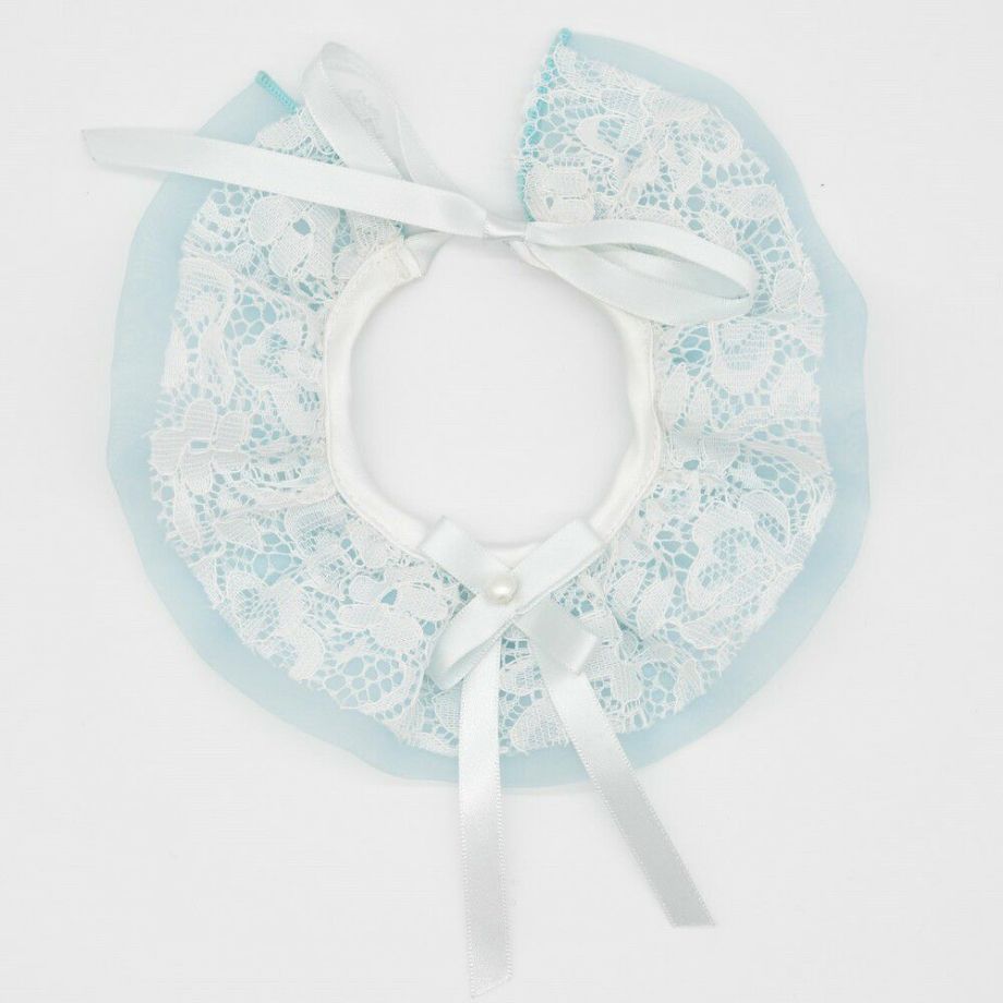襟元が寂しいドレスやシンプルなお洋服に付け襟を着用いただくと可憐なコーディネートの完成です。