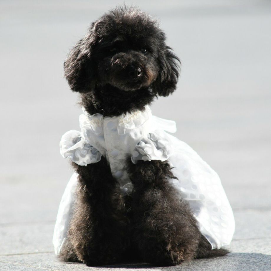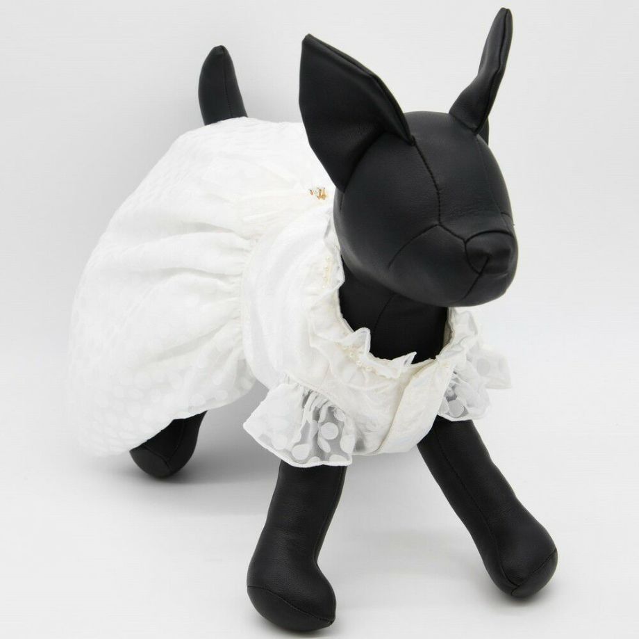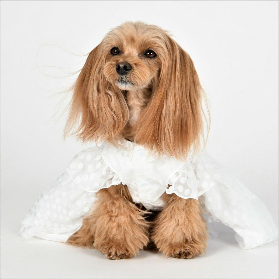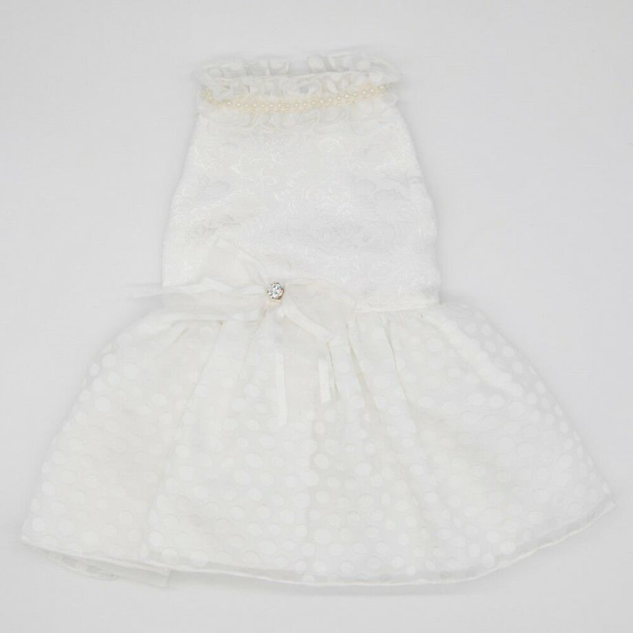 ジャガード織の繊細な生地を使用し、スカートとお袖にはとっても可憐なドットオーガンジーの組み合わせの高級感あふれるドレスです。
