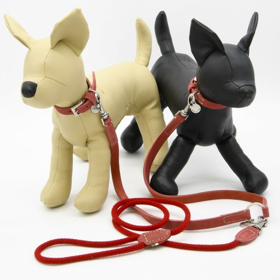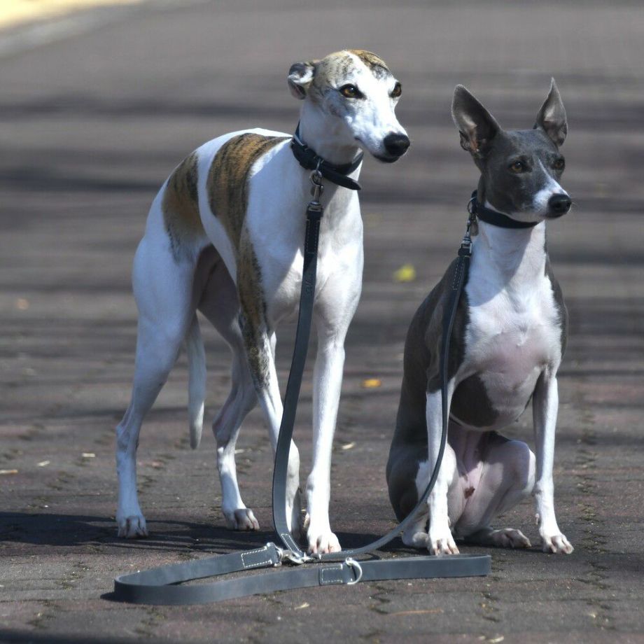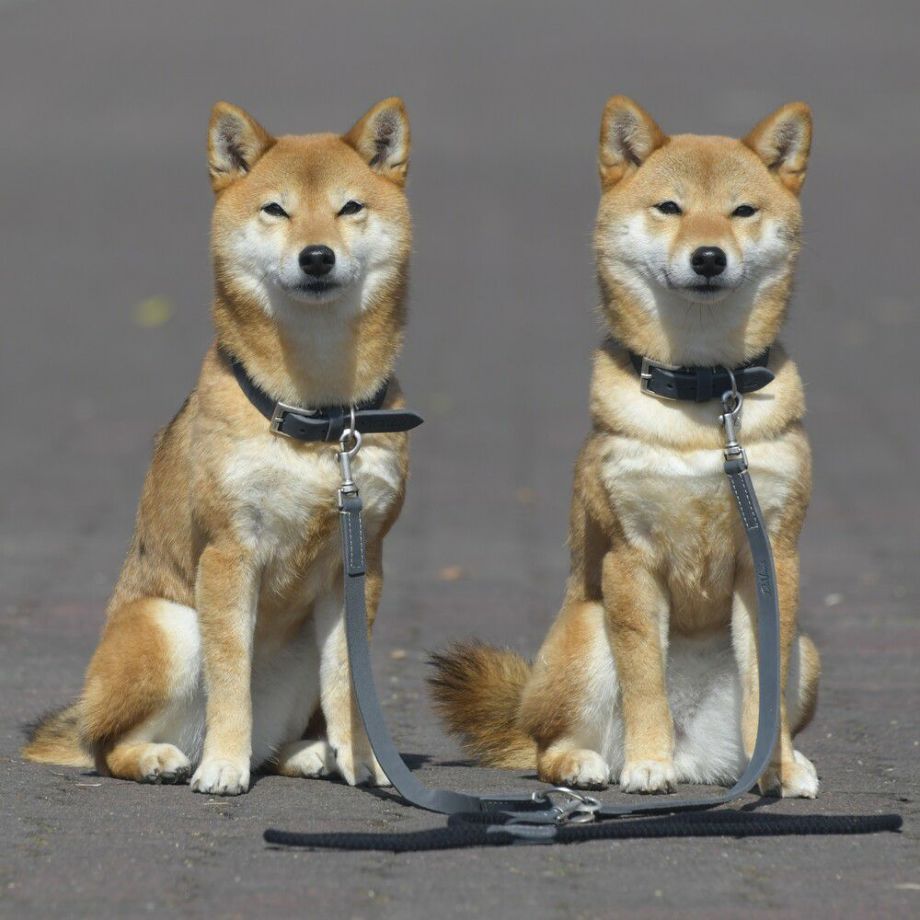 ワックスレザーカラーとお揃いのデザインの2頭用リーシュです。