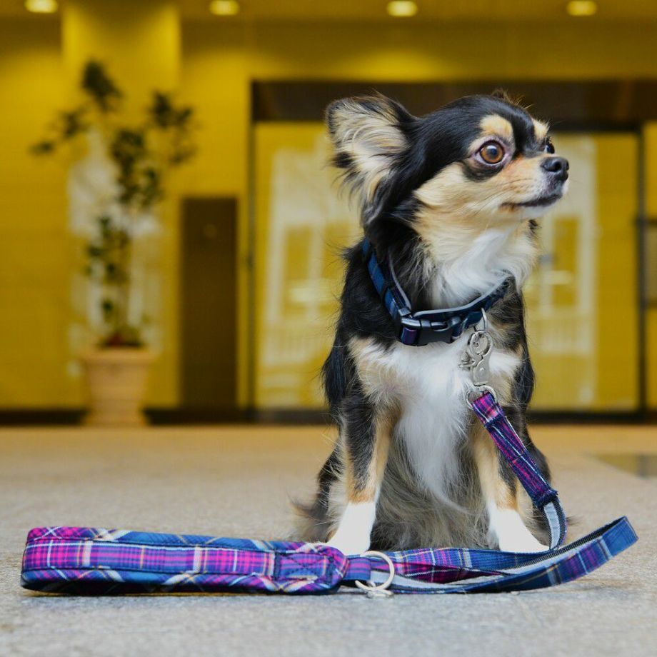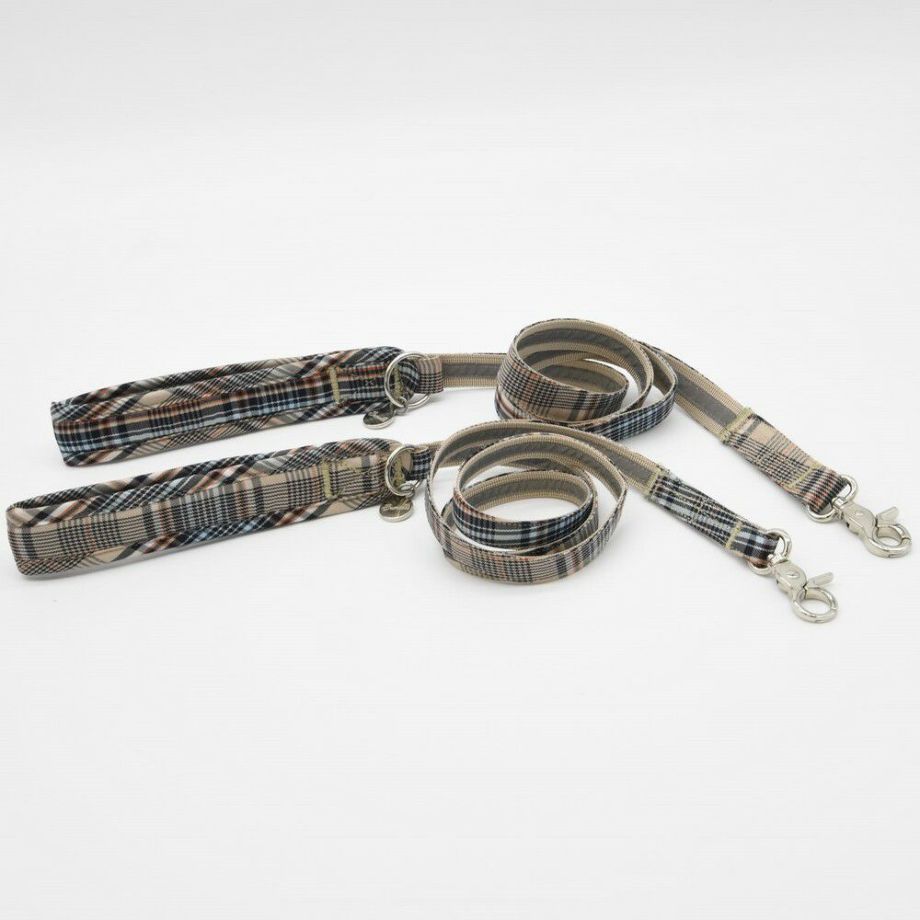 「再帰反射」を実現した光るリーシュ! クラシカルチェックリーシュ【S】