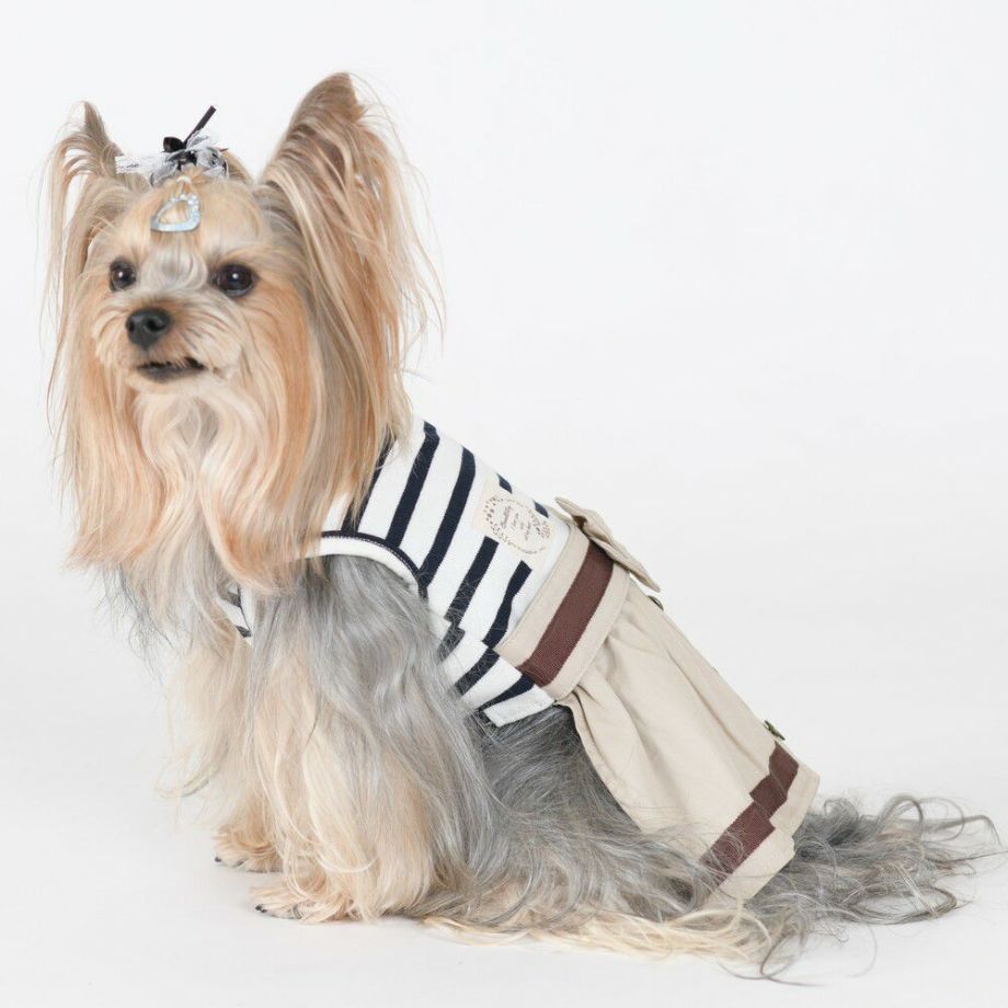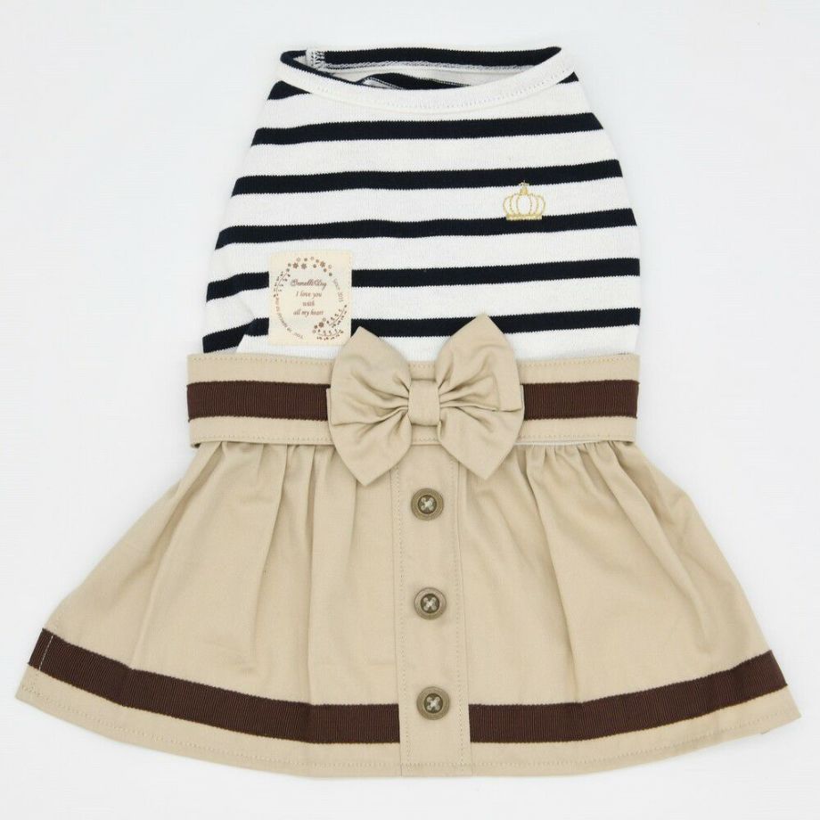 トレンチコートをワンピースに見立てたデザインが特徴のボーダーワンピース。