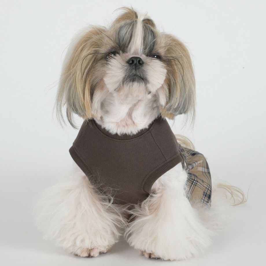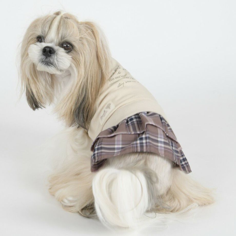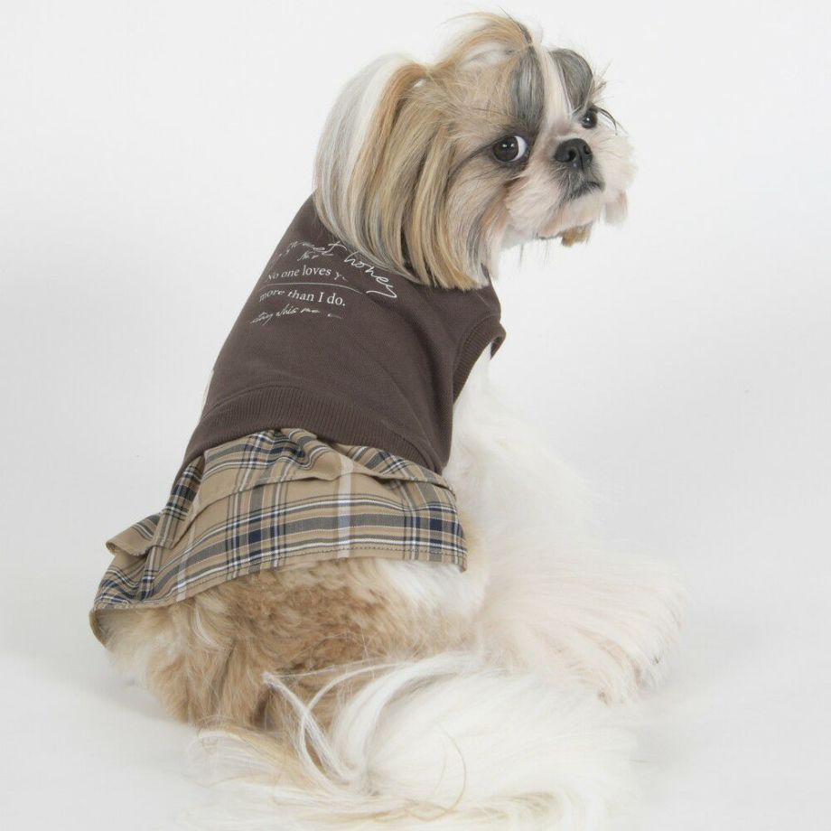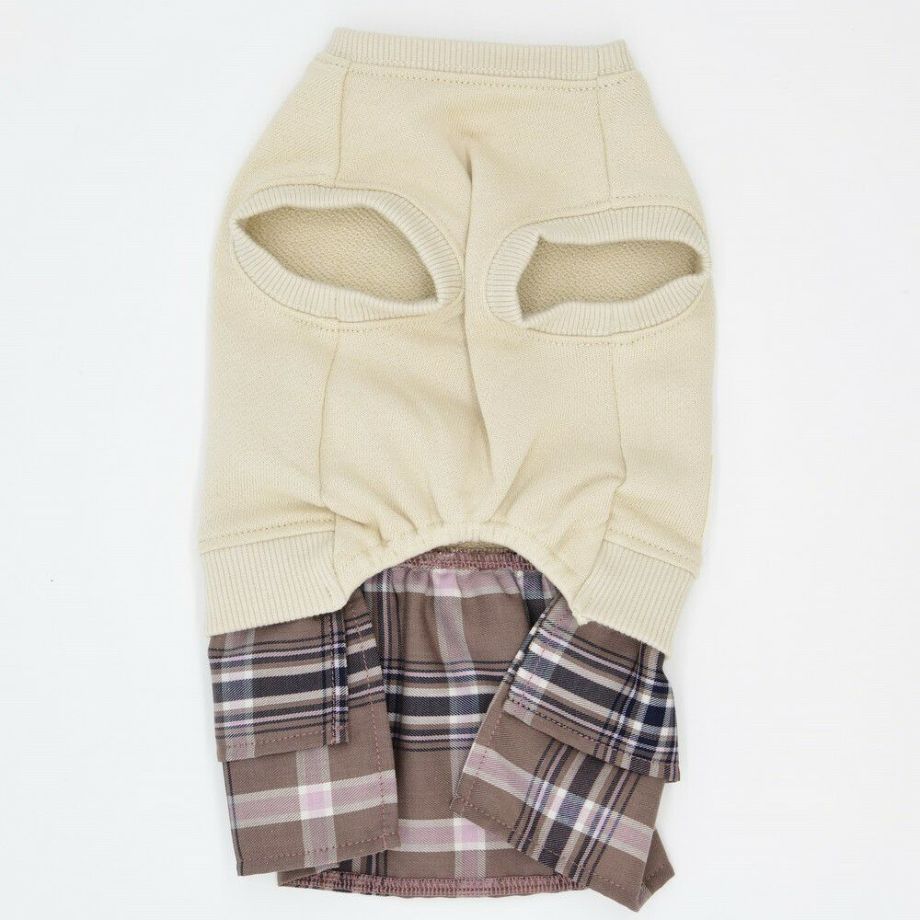 トレーナー生地とチェックスカートの組み合わせにより、カジュアルでありながらもおしゃれなコーディネートを実現したワンピース。