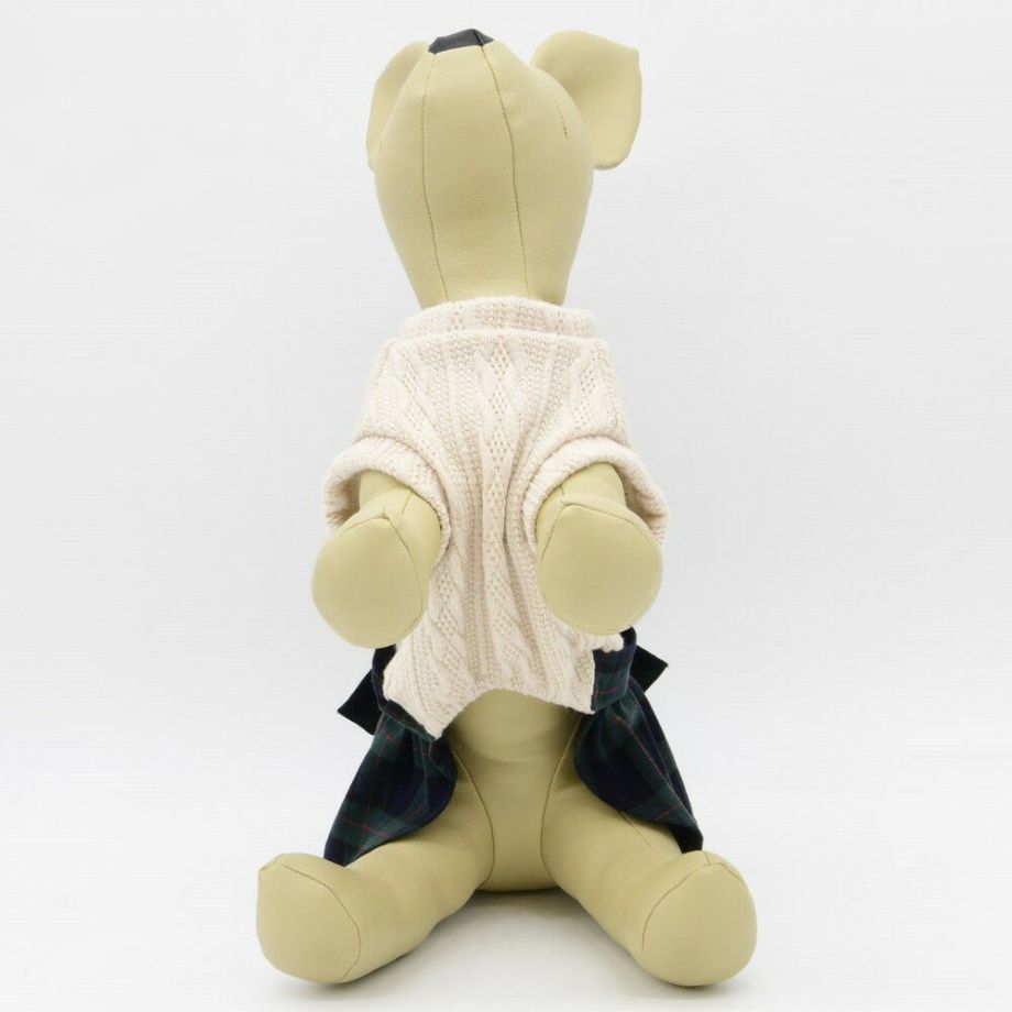 ブリティッシュなチェック生地がポイント ケーブルニットチュニック【M】