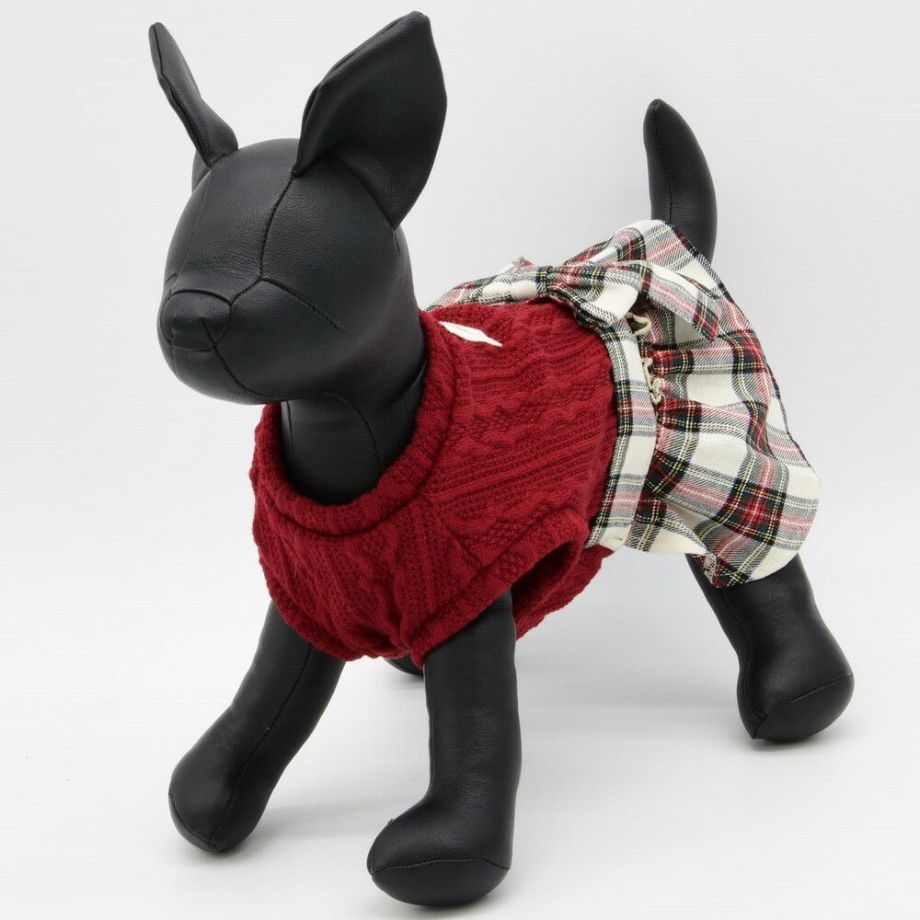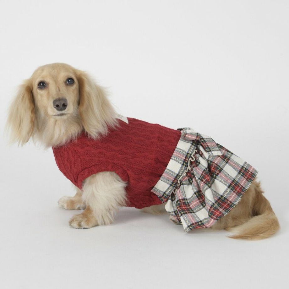 ニット生地のトップスとチェック柄スカートは相性が良く、可愛らしさと温かみを両立したデザイン。