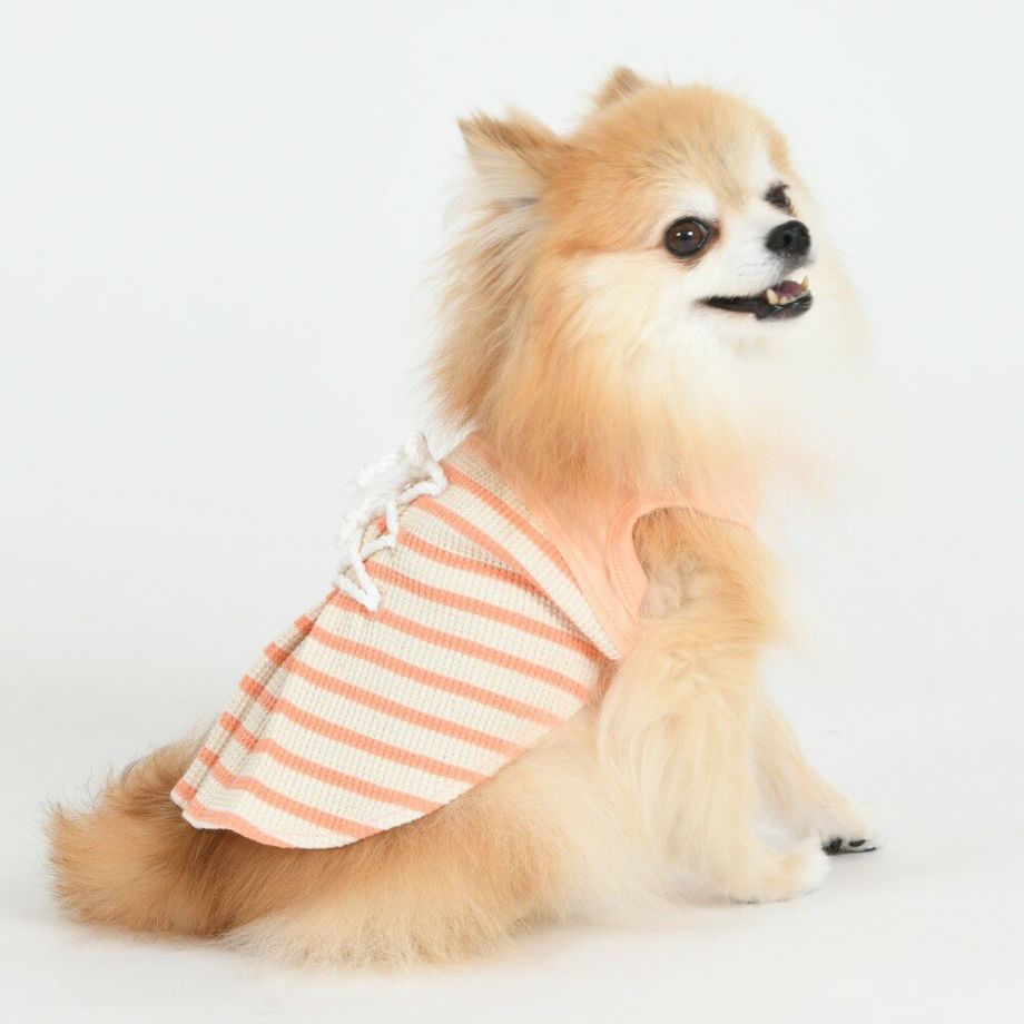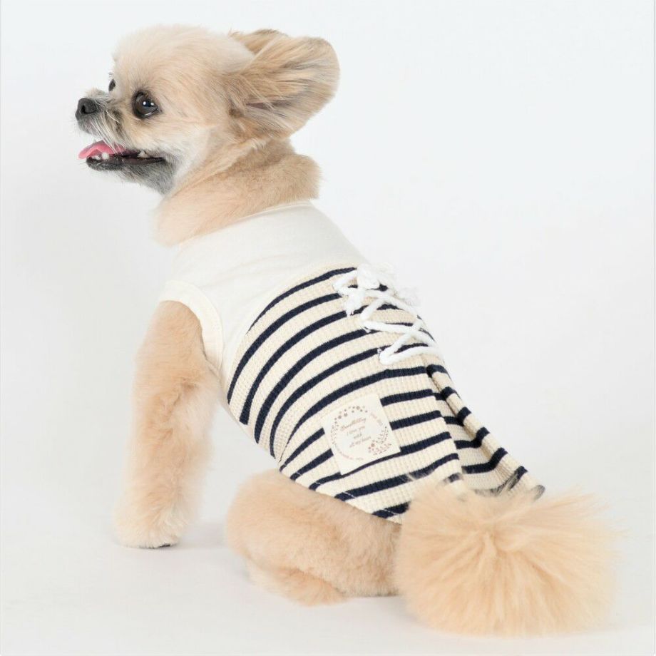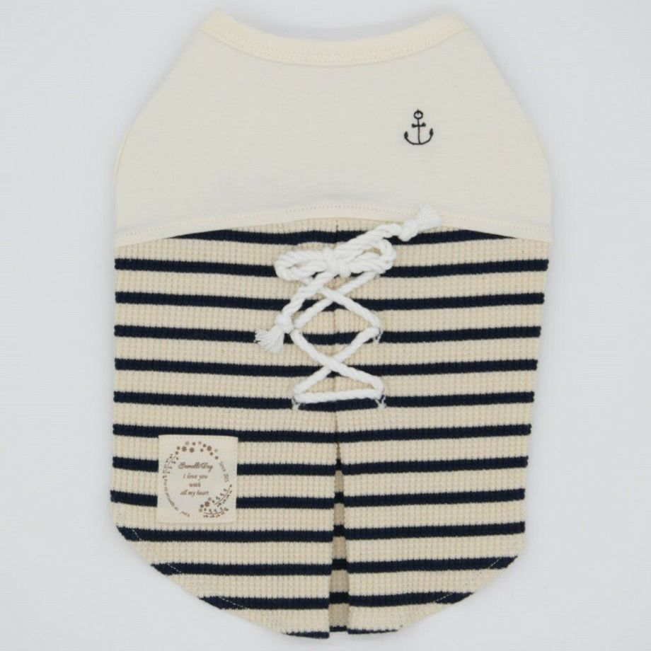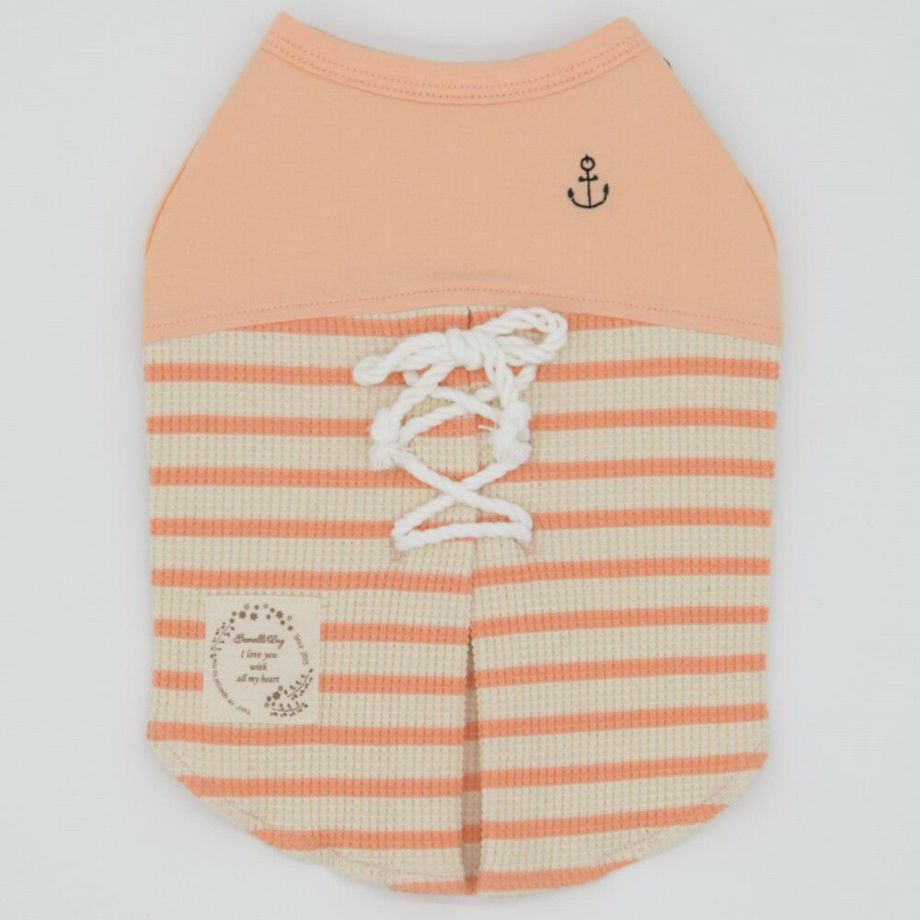 無地とボーダーのワッフル生地を切り替えた春夏らしい色合いとなっております。