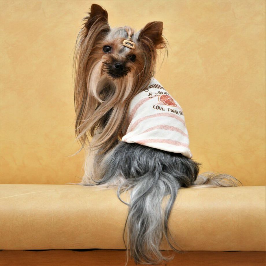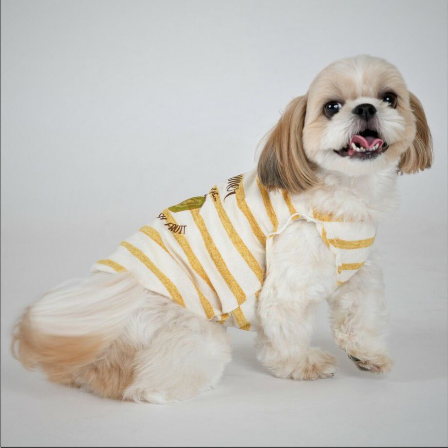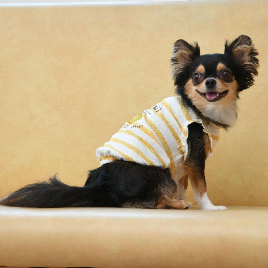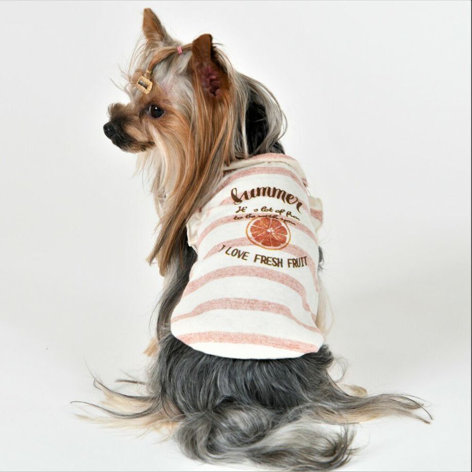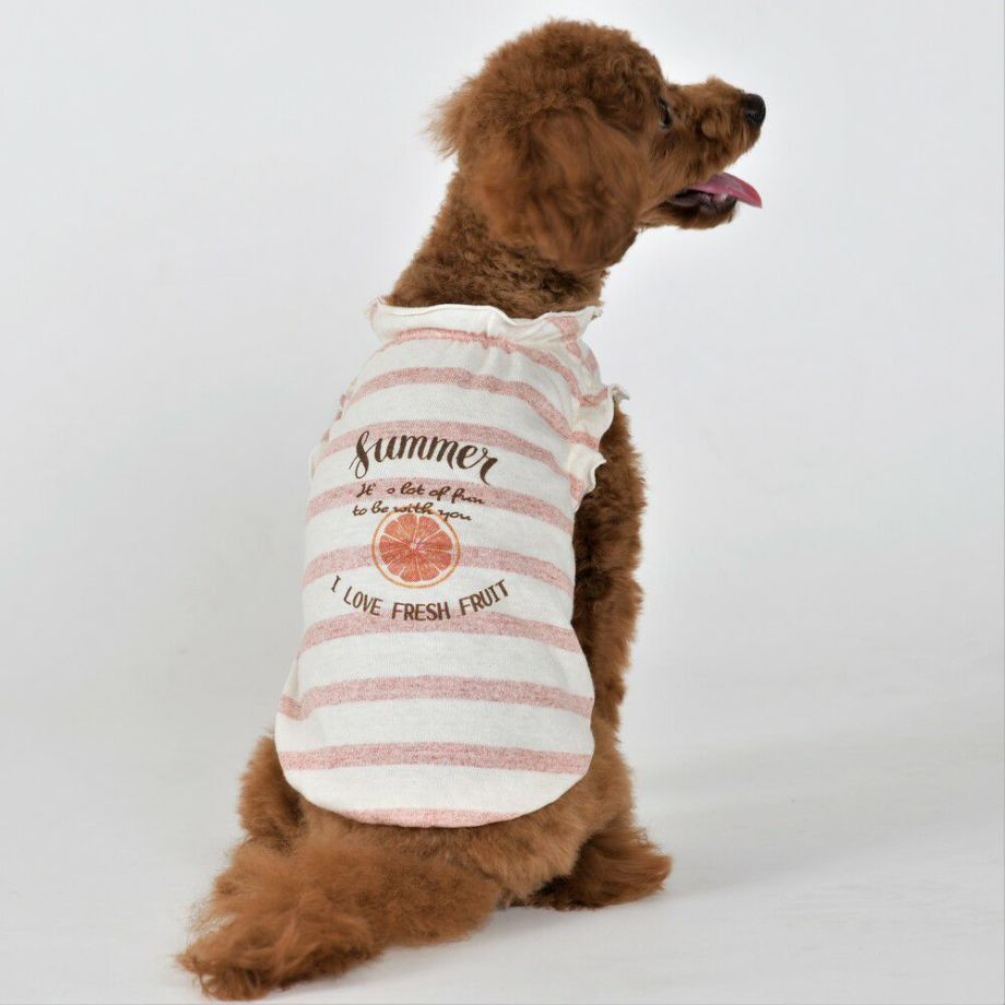 フルーツプリントがお洒落なデザイン! ボーダーフルーツノースリーブ【2号 3号 4号】