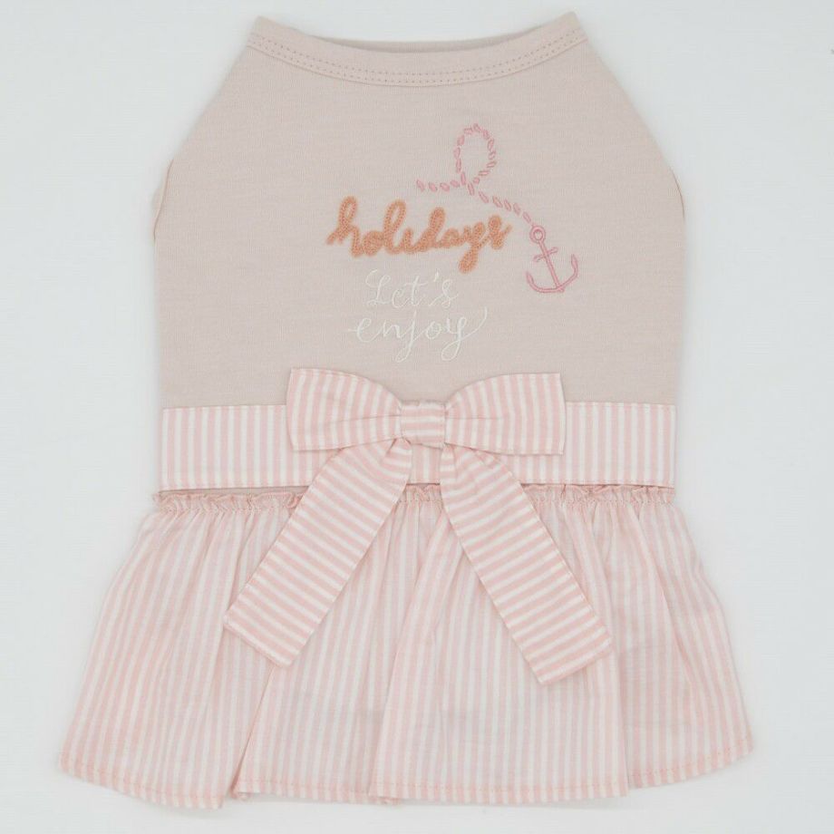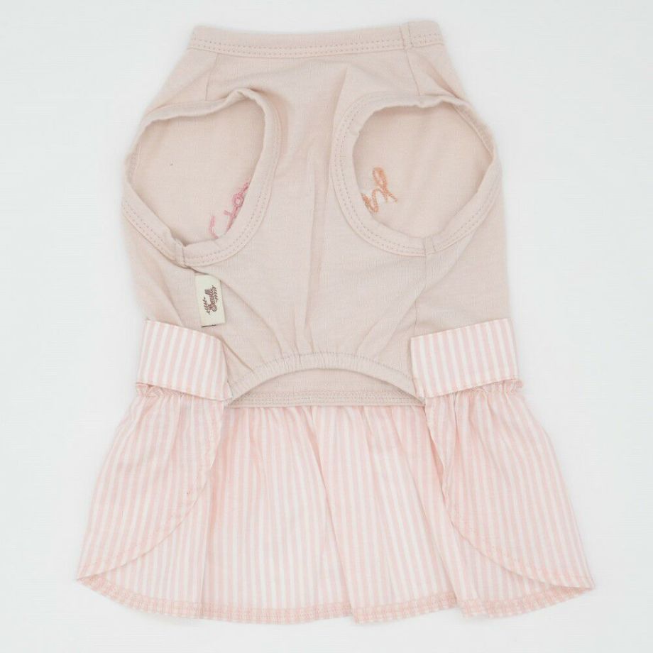 フェミニンな色合いのストライプ生地をリボンとギャザースカートに使用したこだわりのナチュラル×可愛いスタイル!!