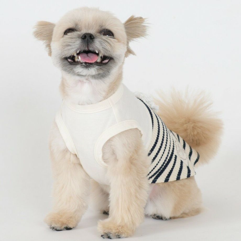 無地とボーダーのワッフル生地を切り替えた春夏らしい色合いとなっております。