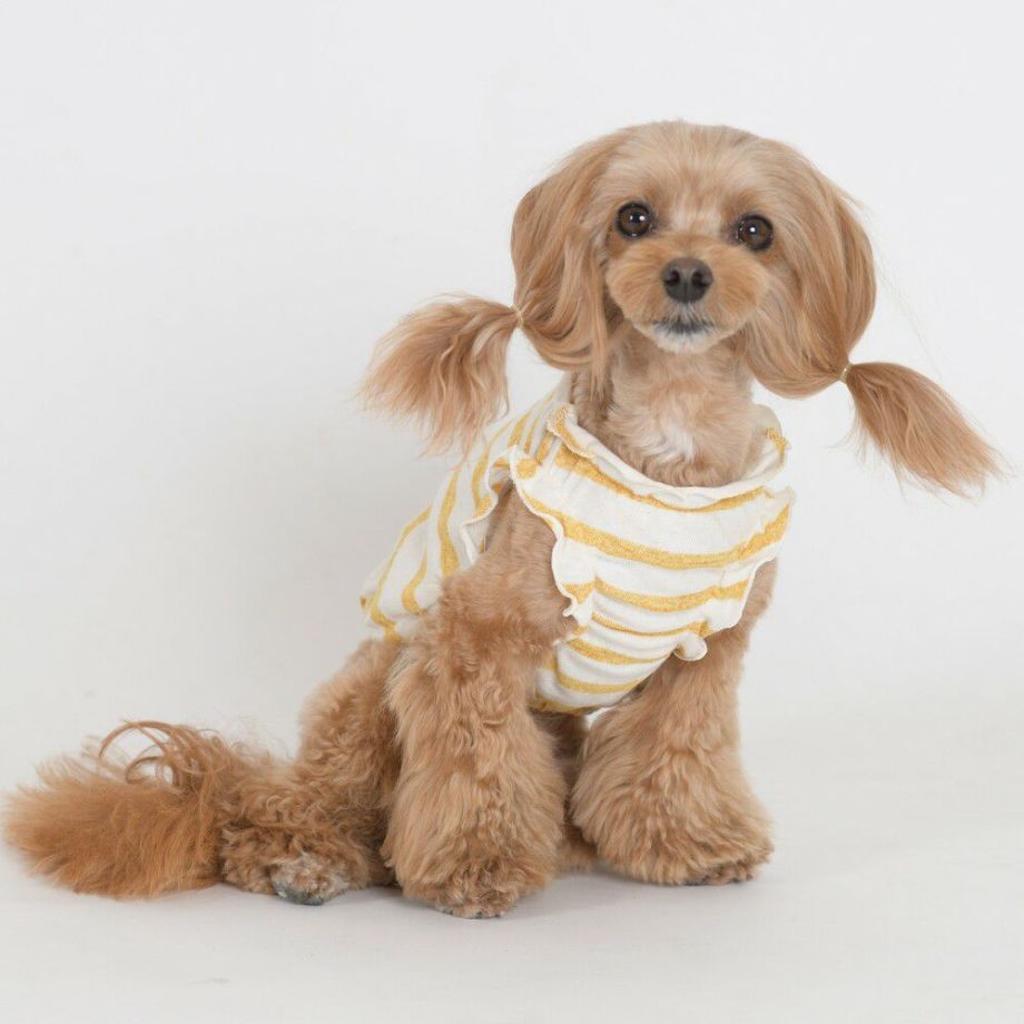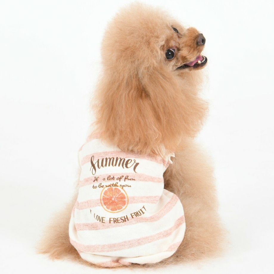 フルーツプリントがお洒落なデザイン! ボーダーフルーツノースリーブ【2号 3号 4号】
