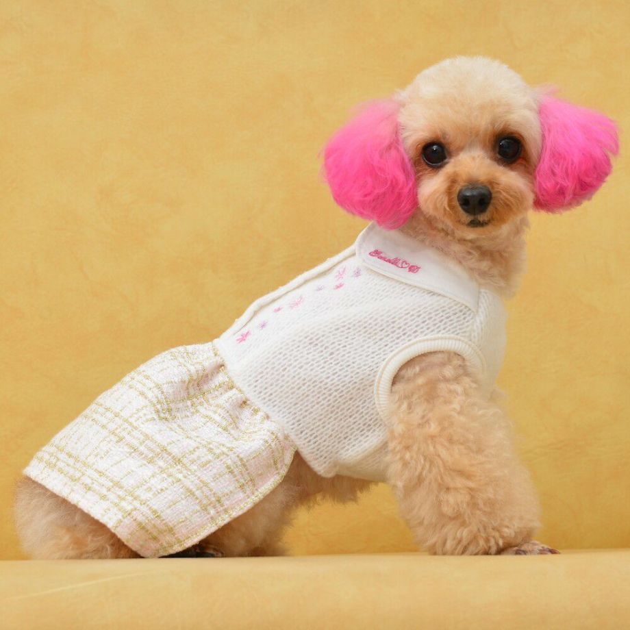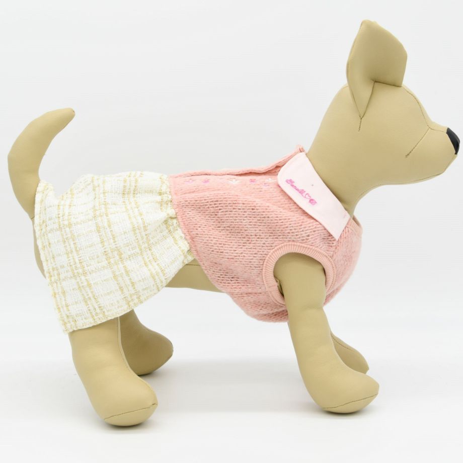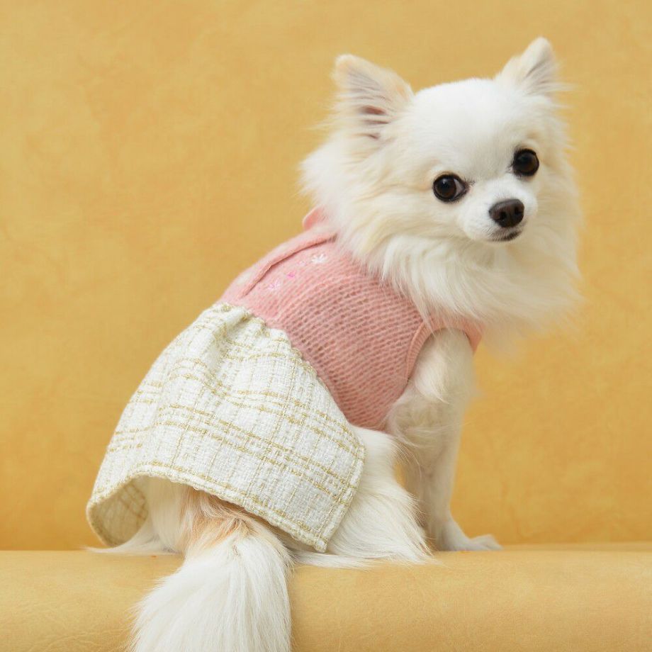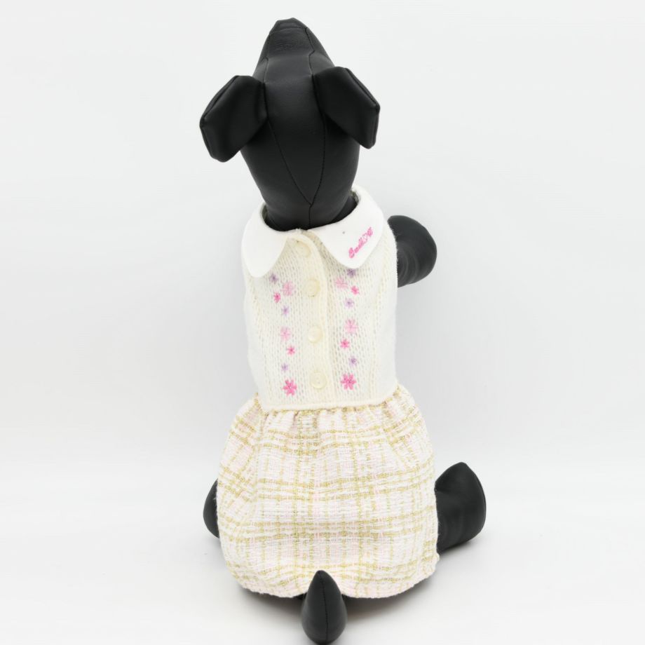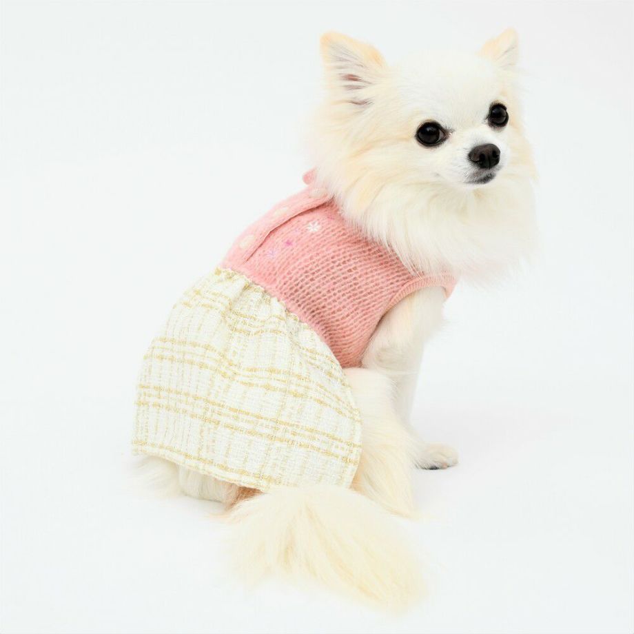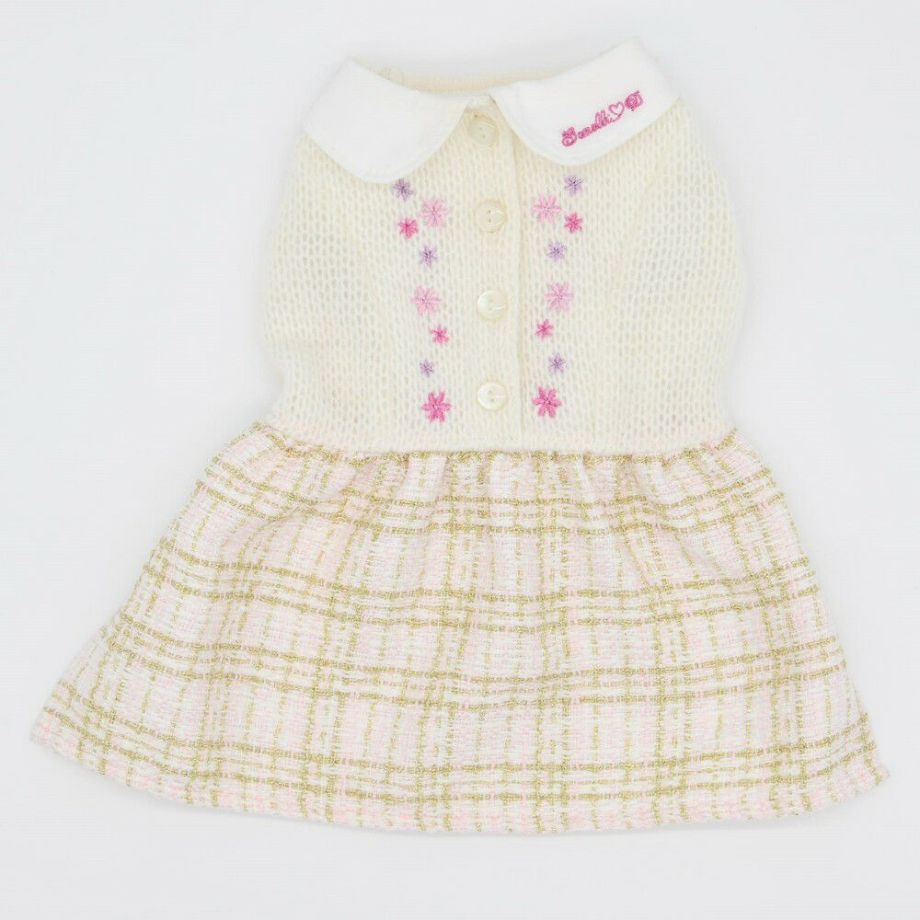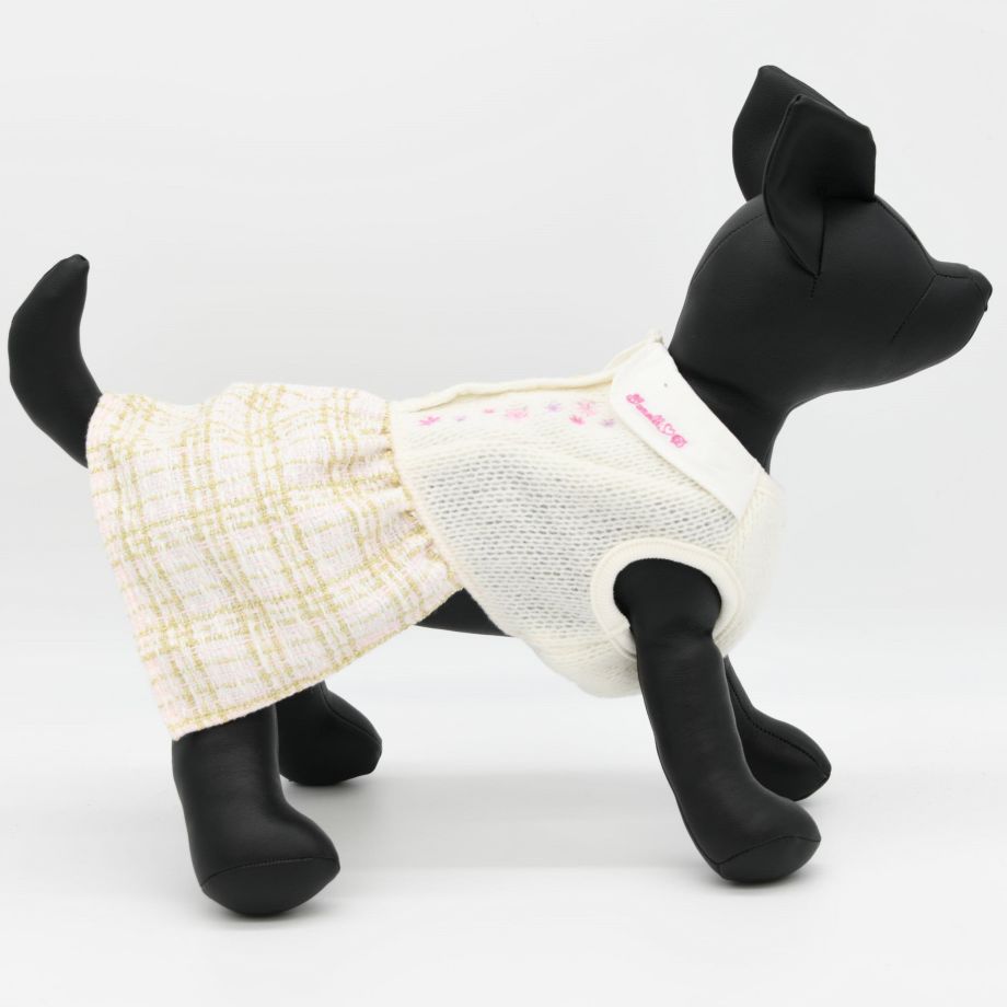 スカート生地は女の子に人気のツイード生地を使用し、ポイントにシャツ衿部分にgemelliの刺繍を入れ可愛らしいデザインの中にも品を感じる商品となっております。