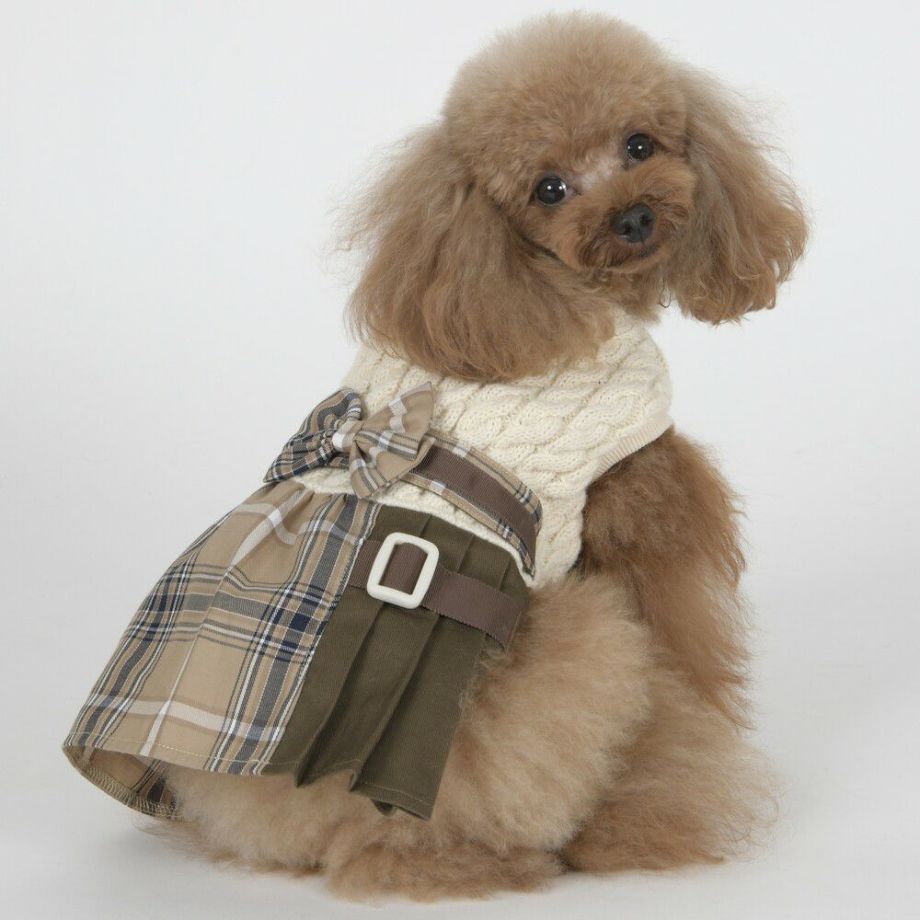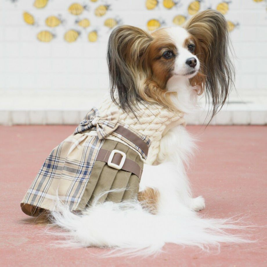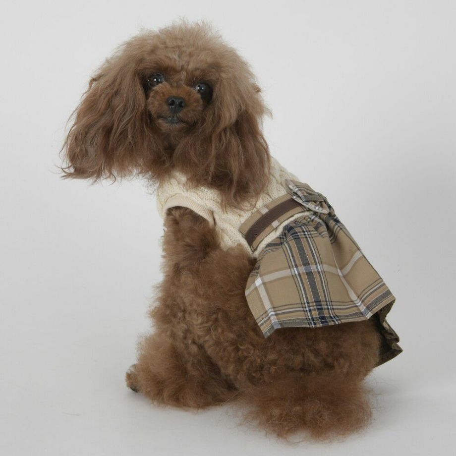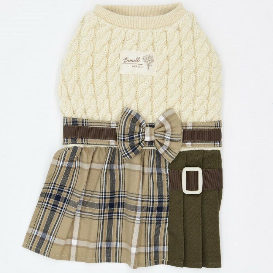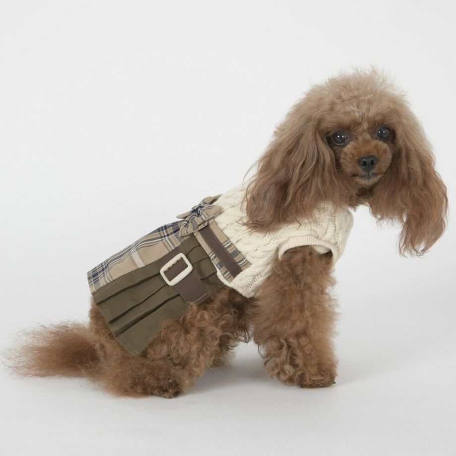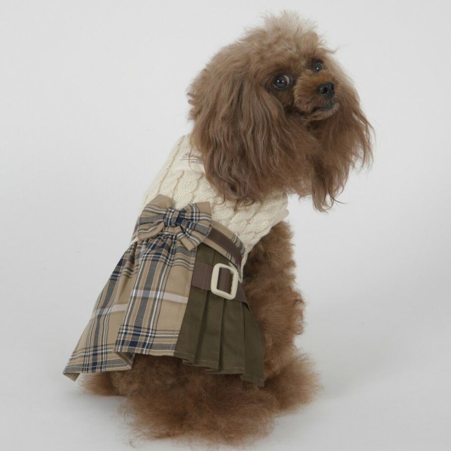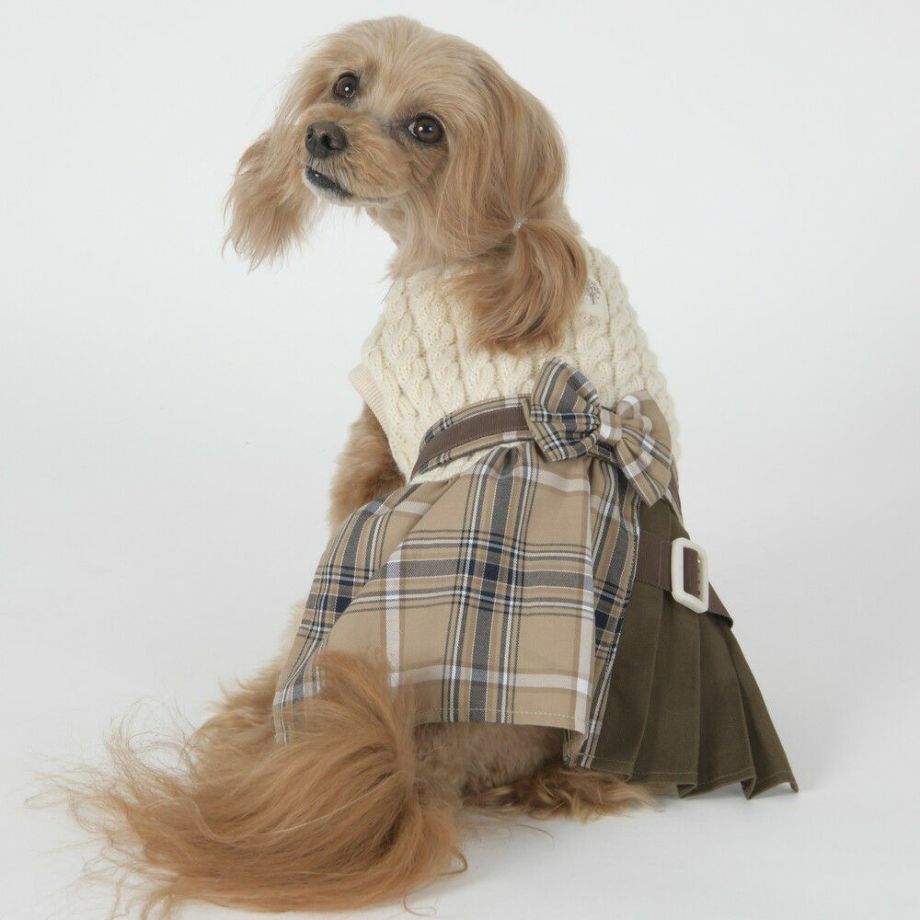 チェック生地をメインに、プリーツ加工を施した無地生地で切り替えた洗礼されたスタイル。