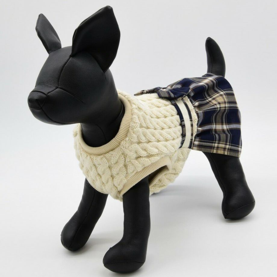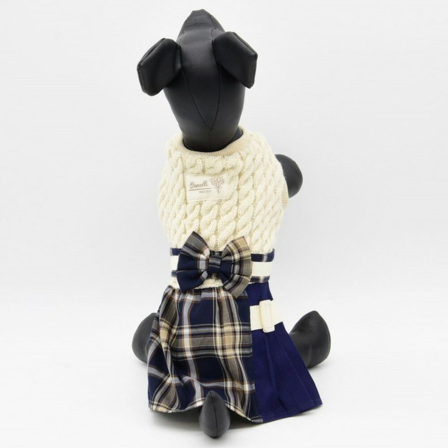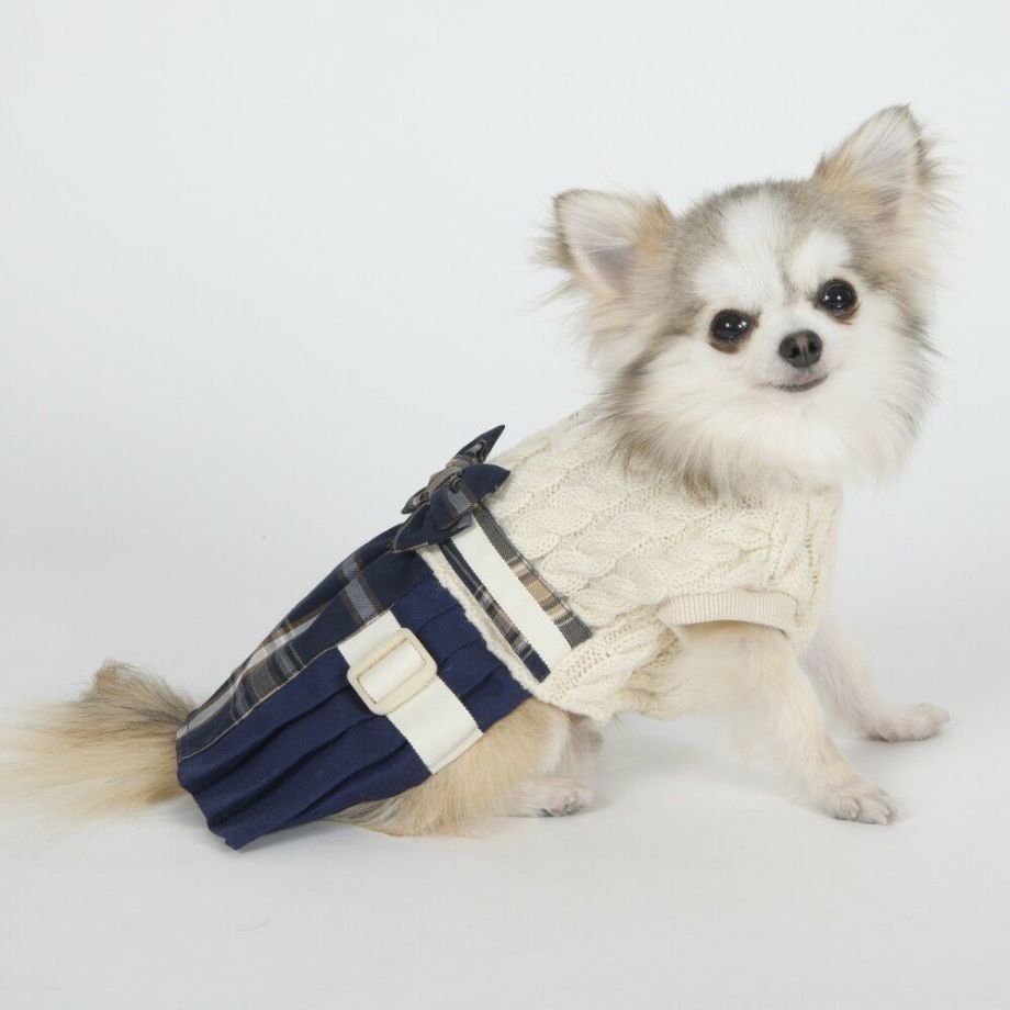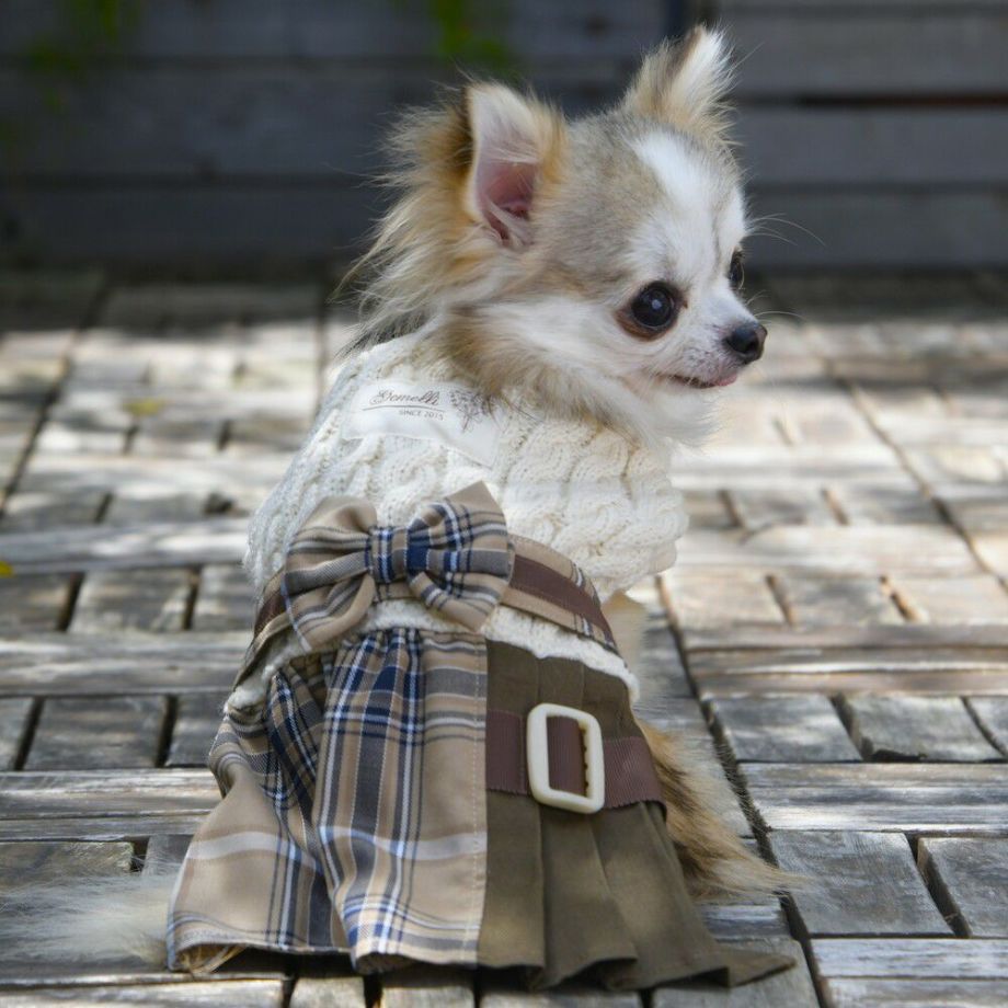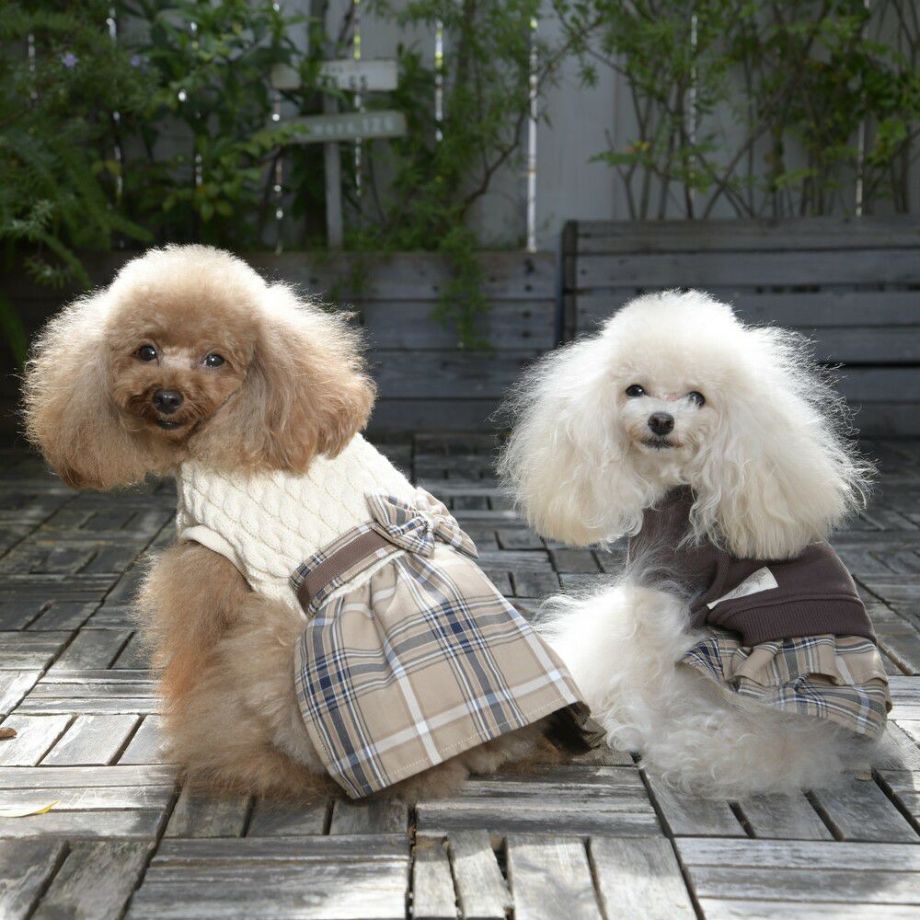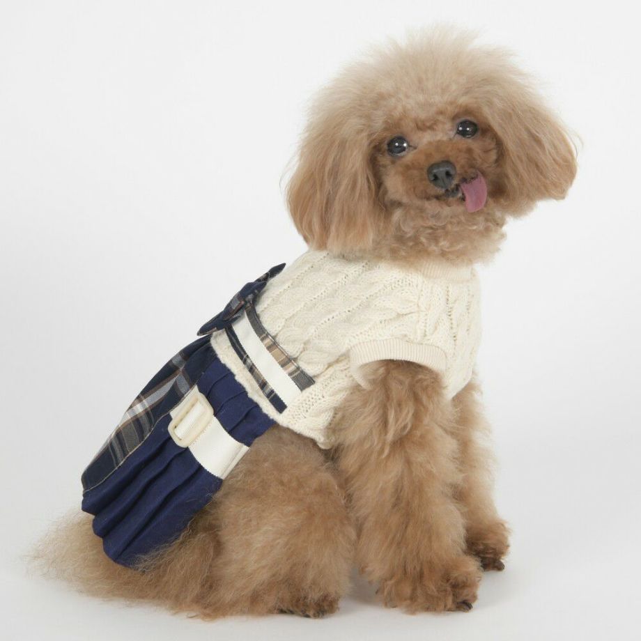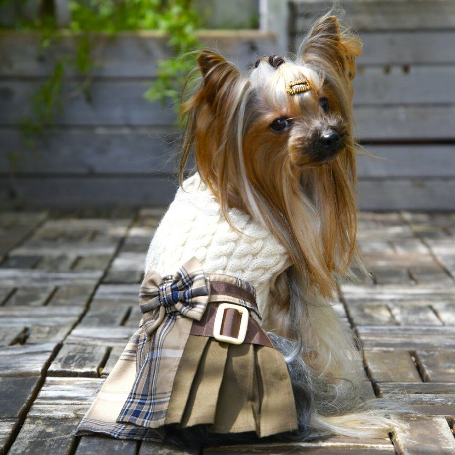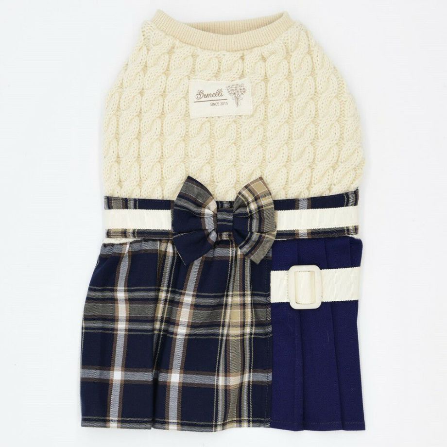 チェック生地をメインに、プリーツ加工を施した無地生地で切り替えた洗礼されたスタイル。