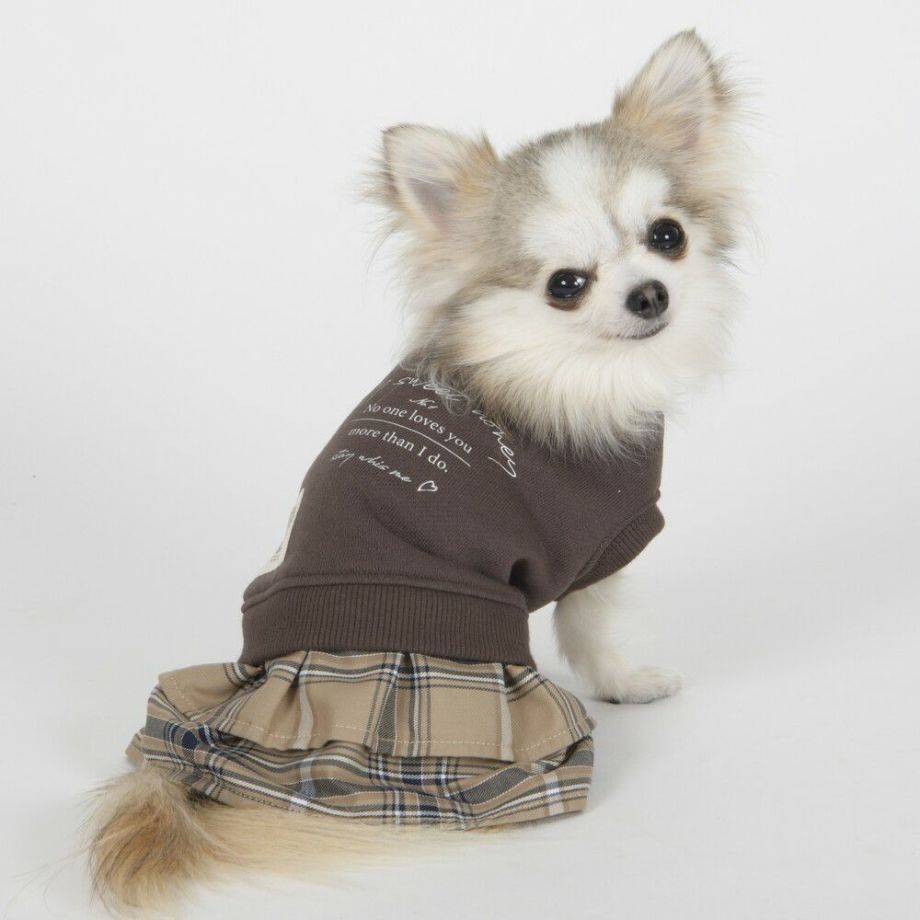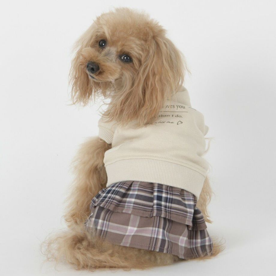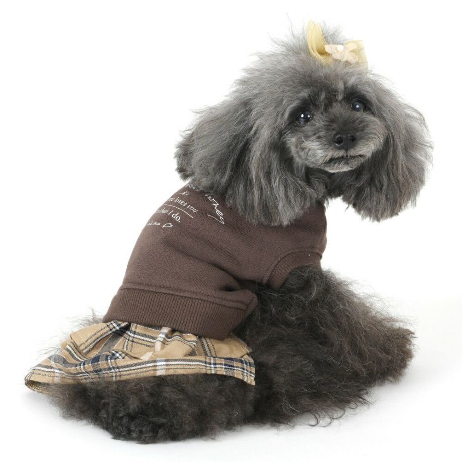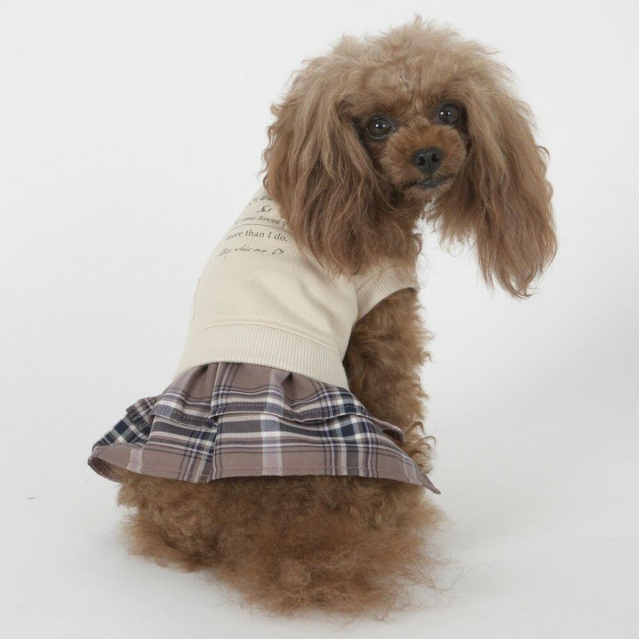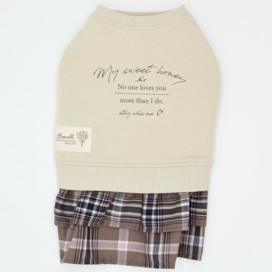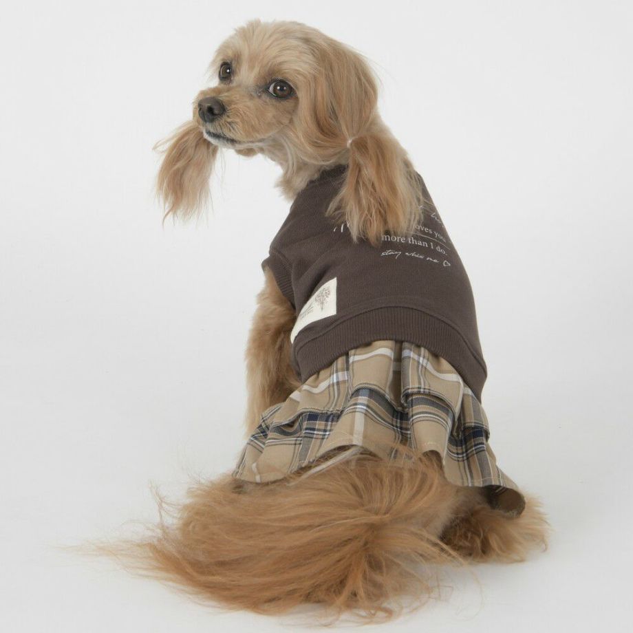 トレーナー生地とチェックスカートの組み合わせにより、カジュアルでありながらもおしゃれなコーディネートを実現したワンピース。