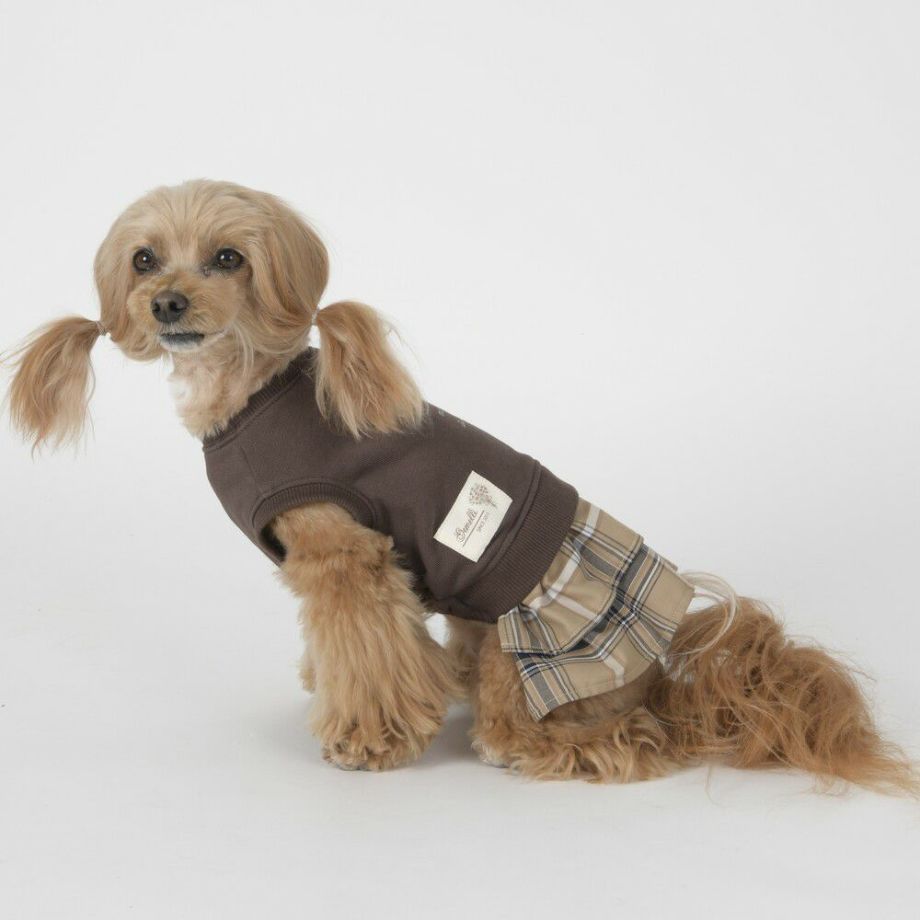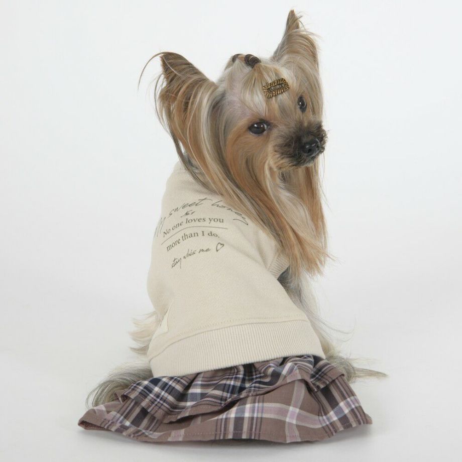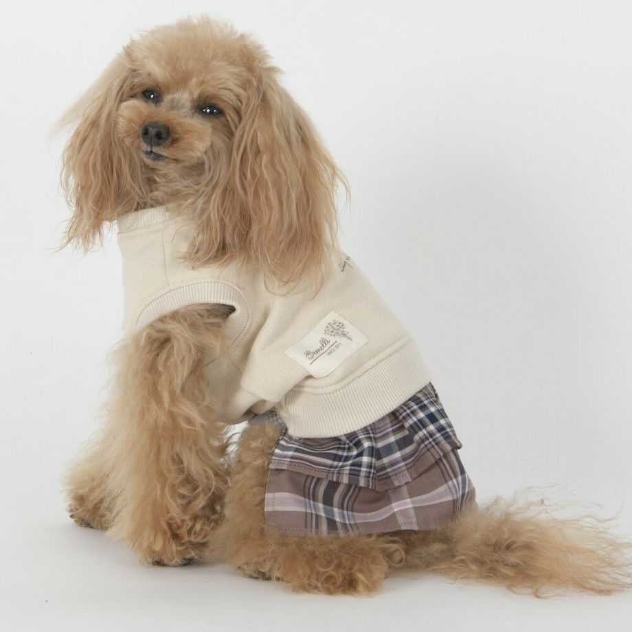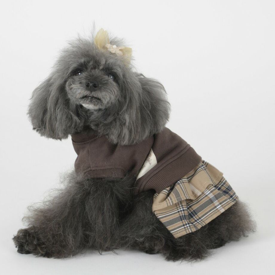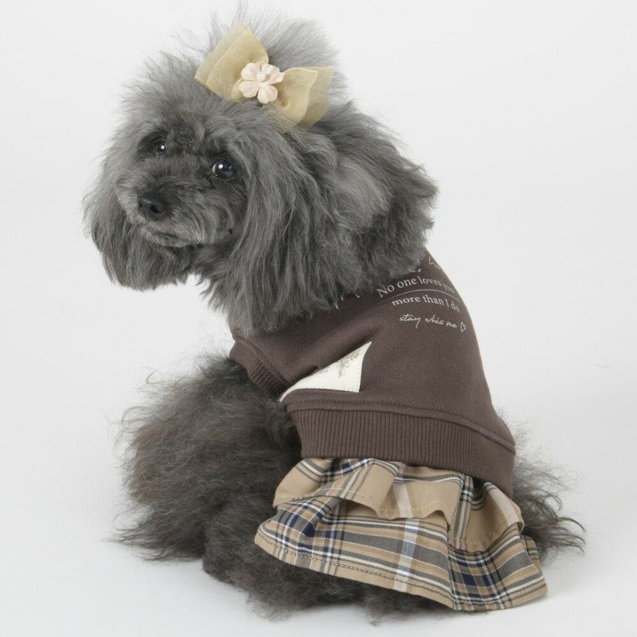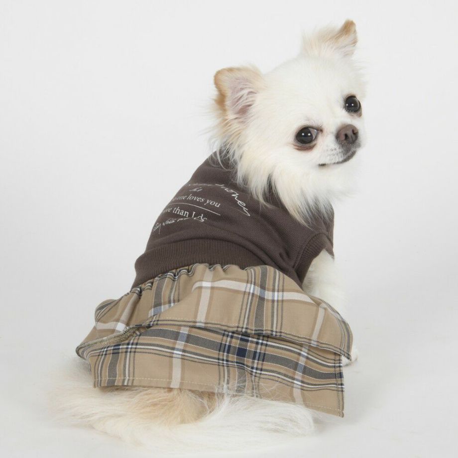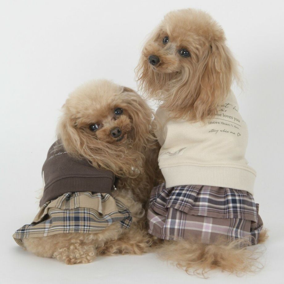 トレーナー生地とチェックスカートの組み合わせにより、カジュアルでありながらもおしゃれなコーディネートを実現したワンピース。