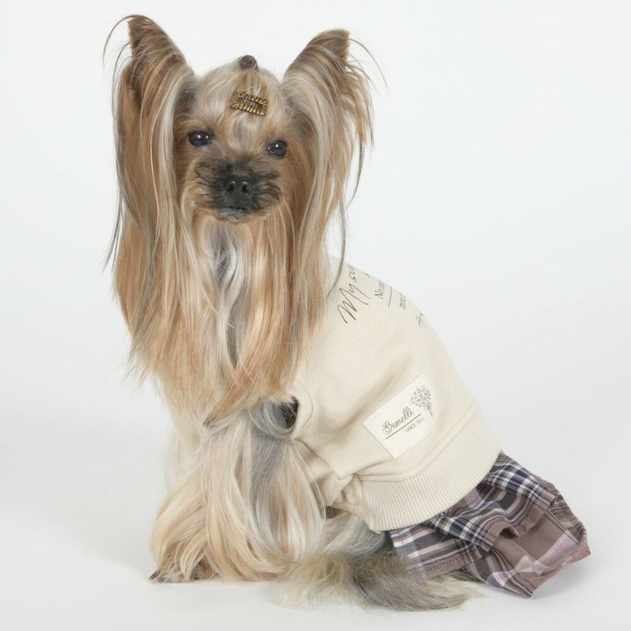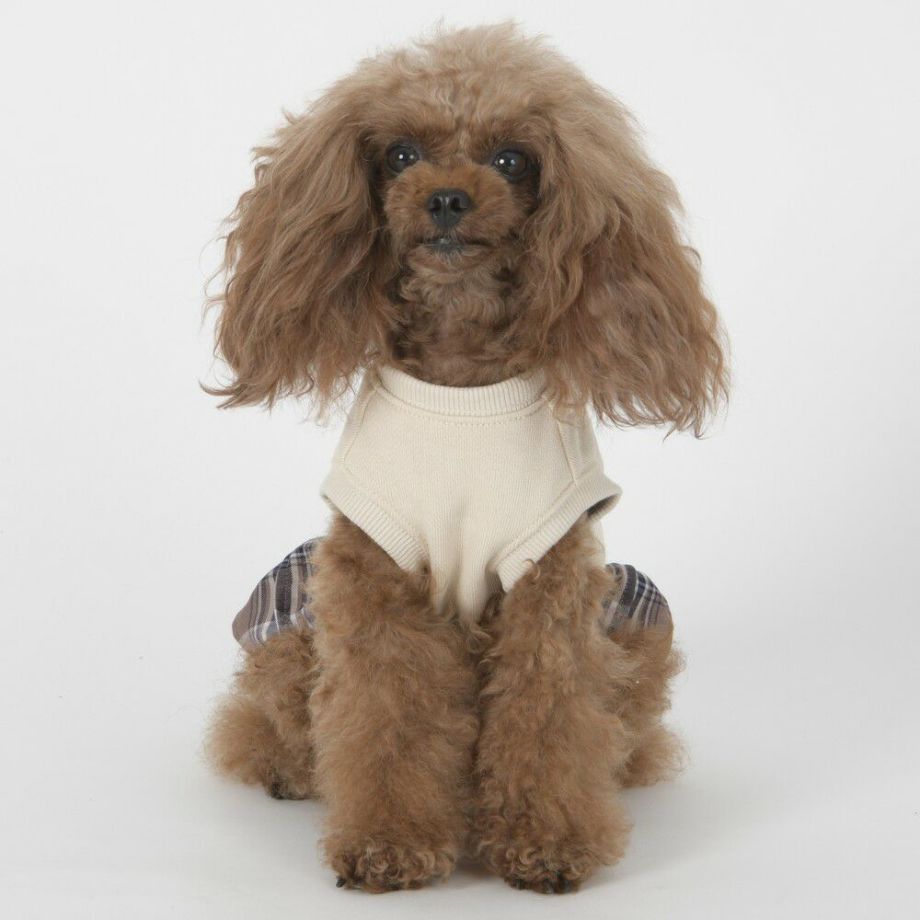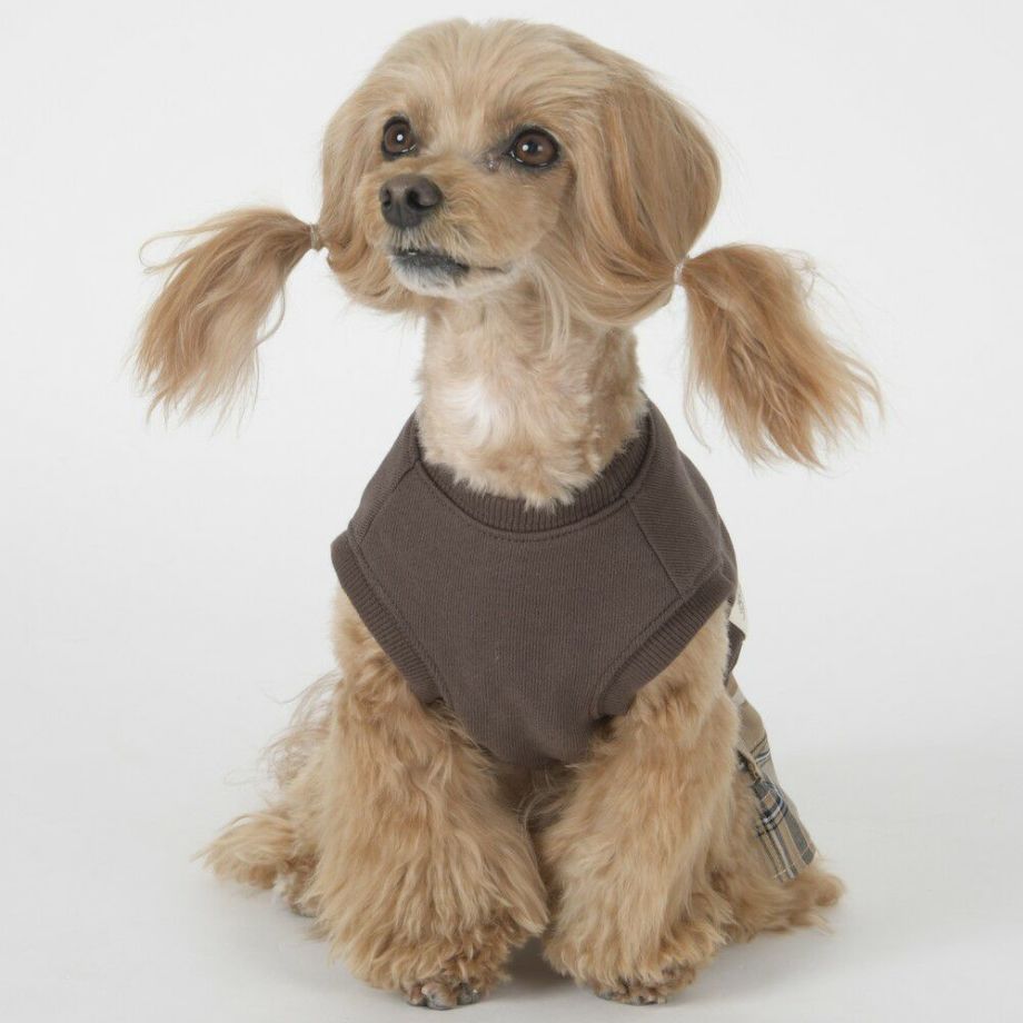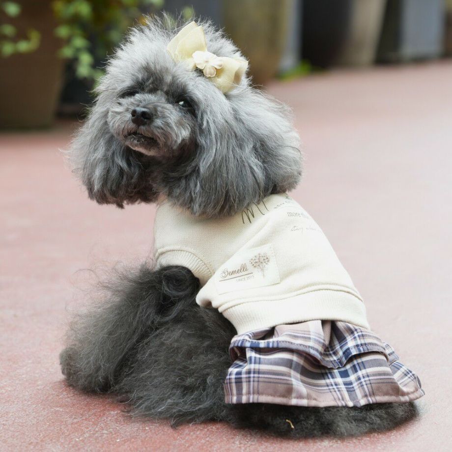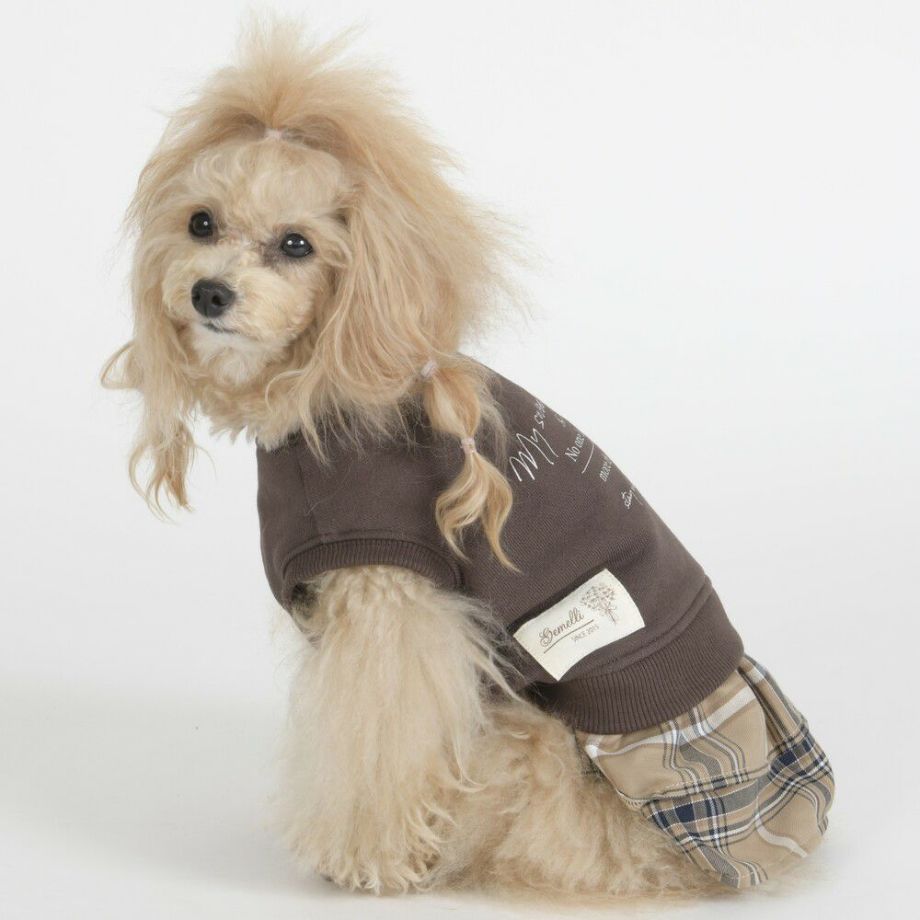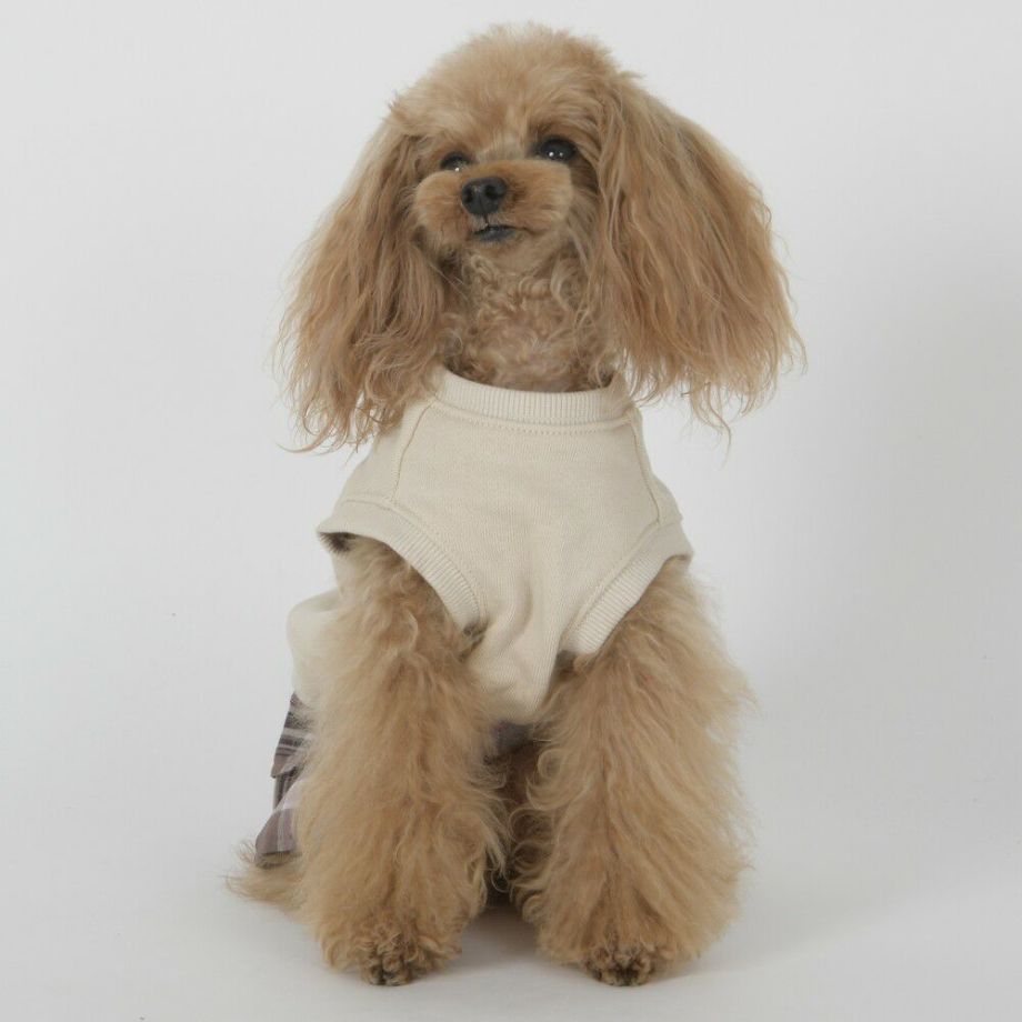 トレーナー生地とチェックスカートの組み合わせにより、カジュアルでありながらもおしゃれなコーディネートを実現したワンピース。