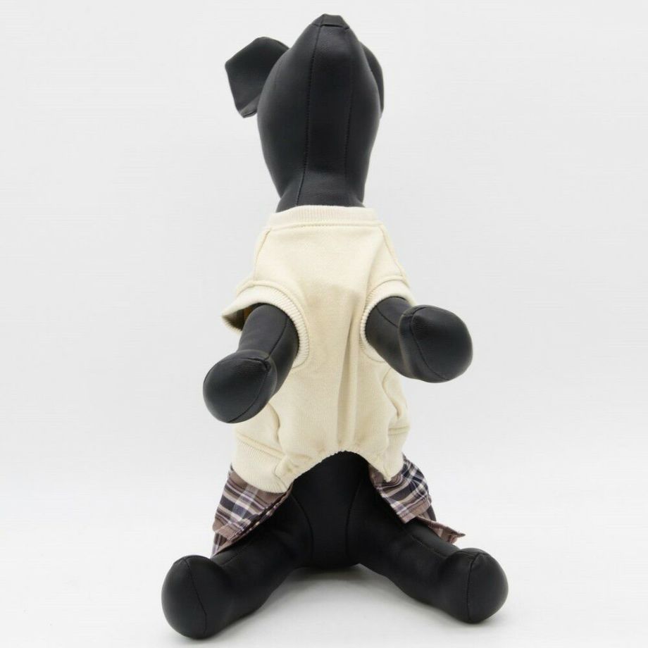 トレーナー生地とチェックスカートの組み合わせにより、カジュアルでありながらもおしゃれなコーディネートを実現したワンピース。