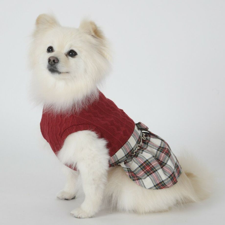 ニット生地のトップスとチェック柄スカートは相性が良く、可愛らしさと温かみを両立したデザイン。