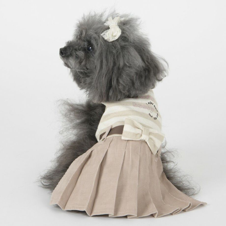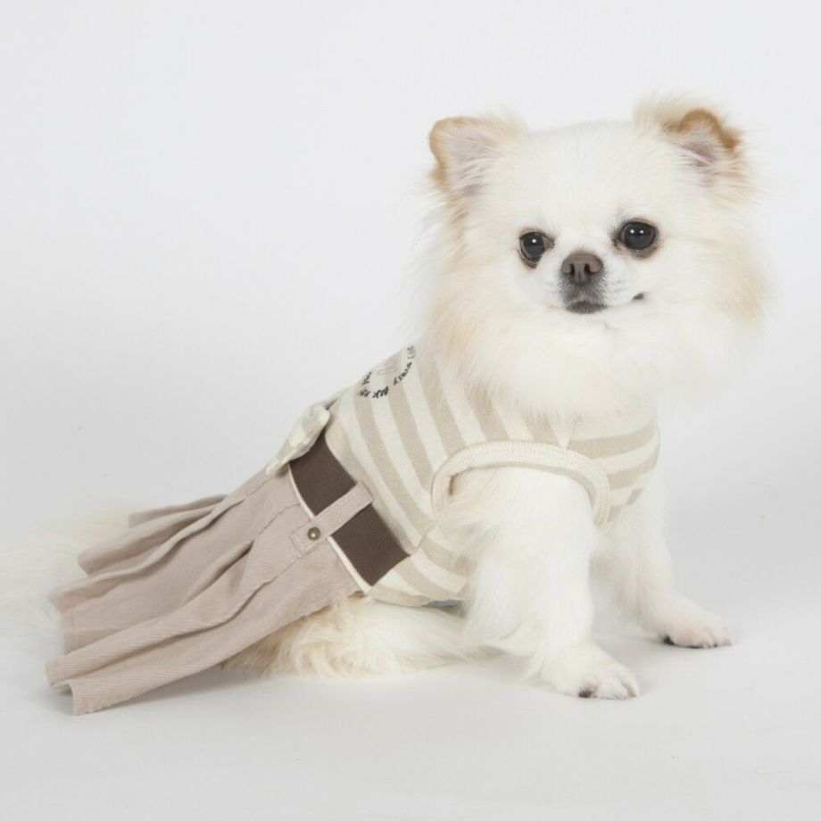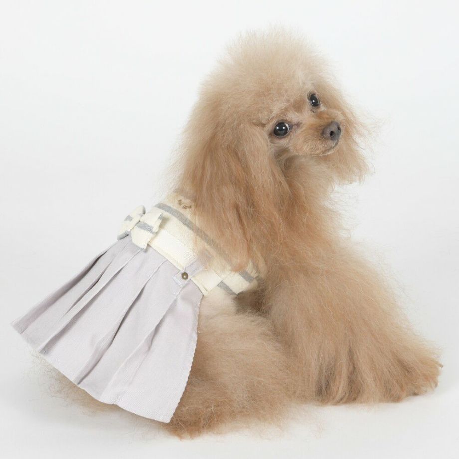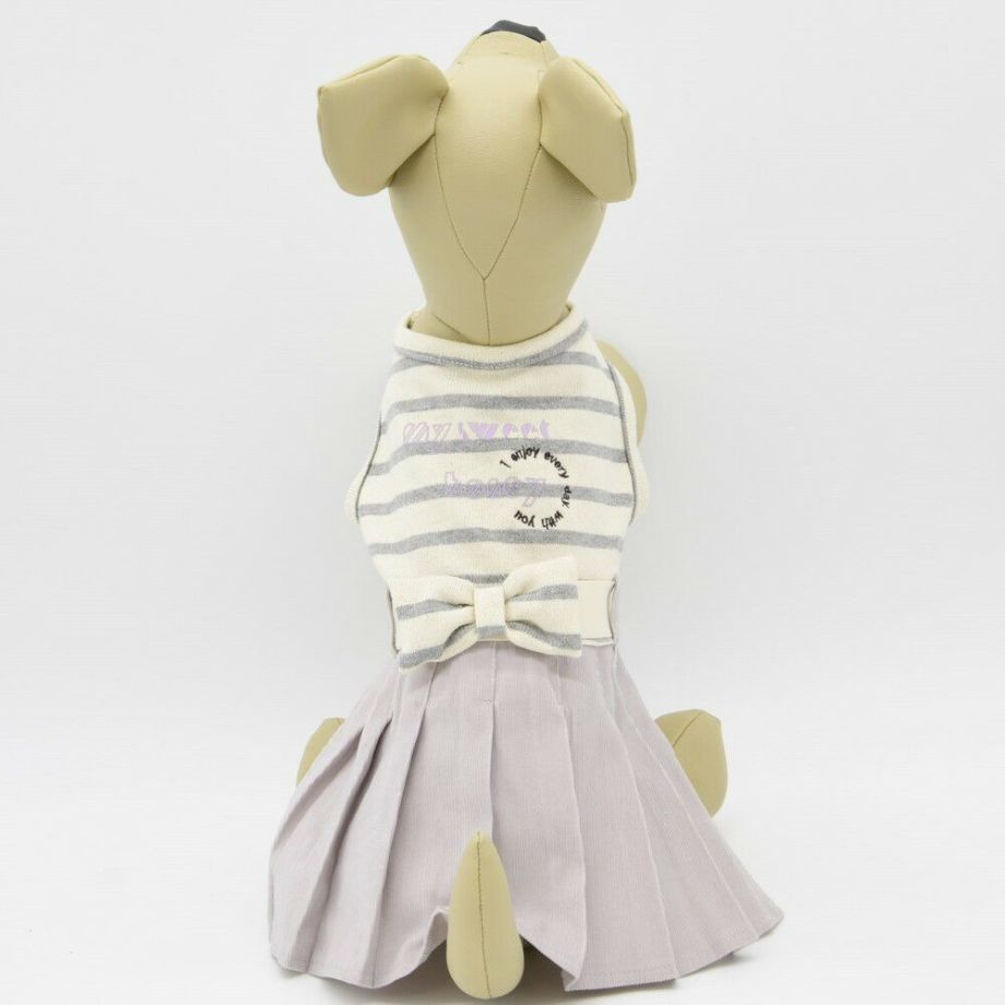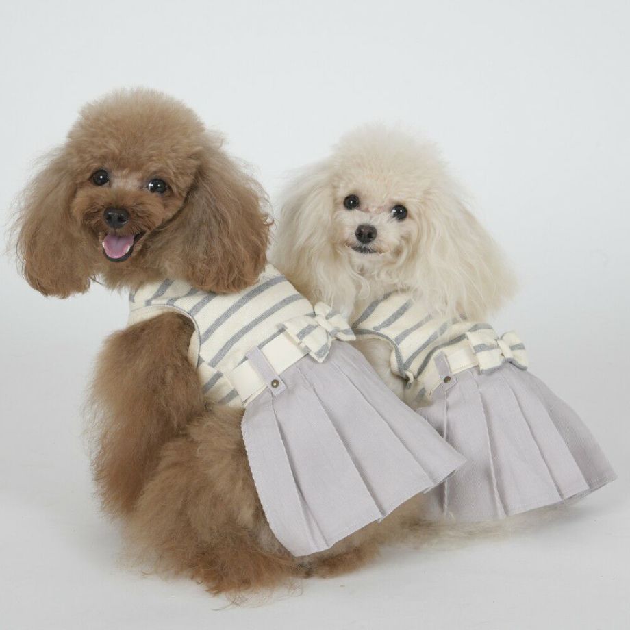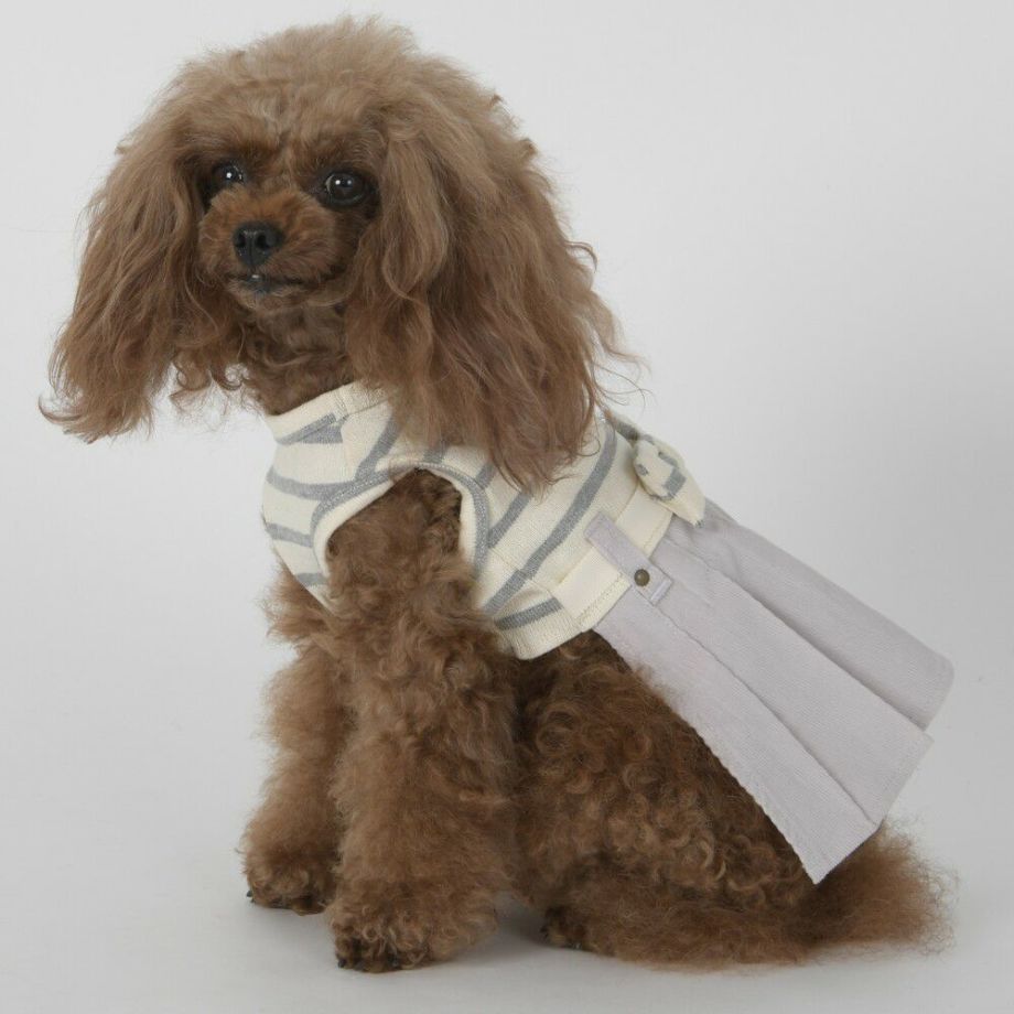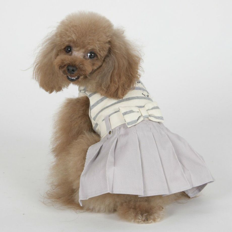 コーデュロイのプリーツ加工がおしゃれで可愛く、落ち着きがあるナチュラルカラーのボーダーを合わせる事により、シックで落ち着いた雰囲気に。
