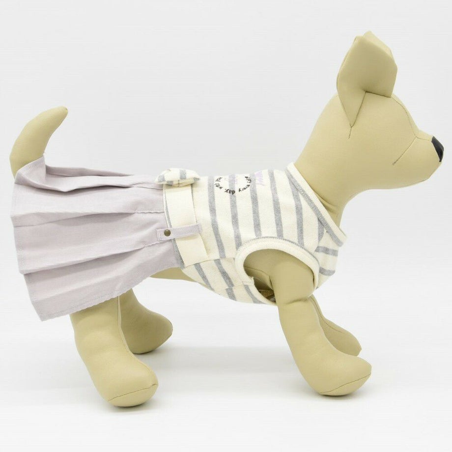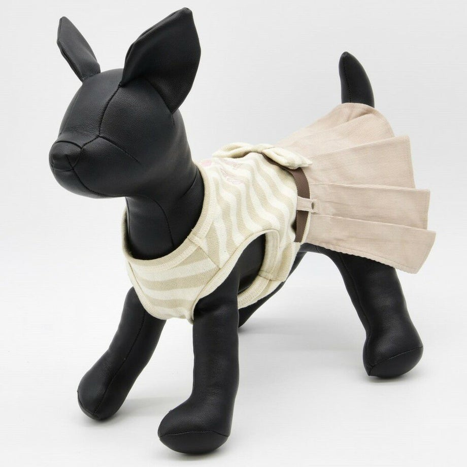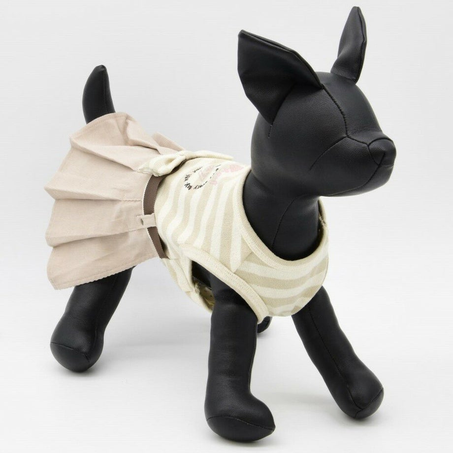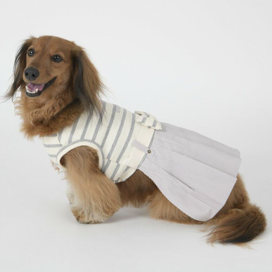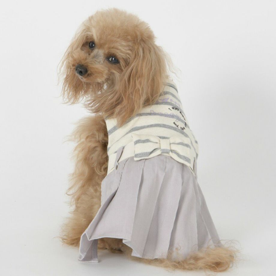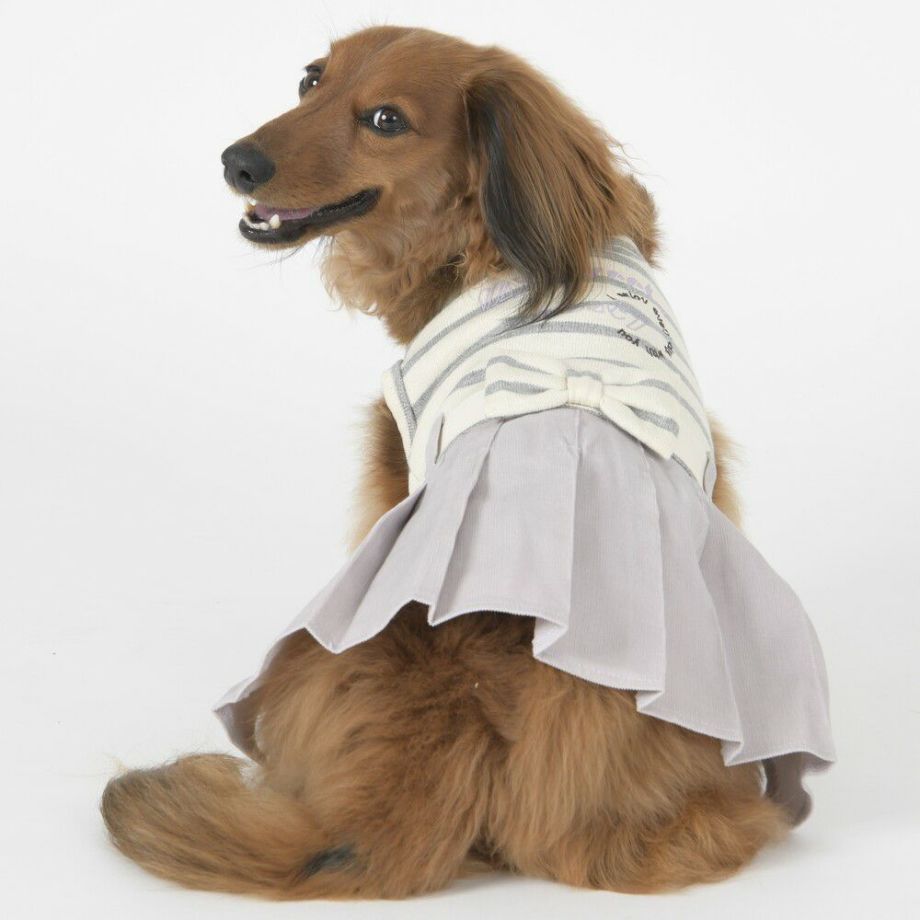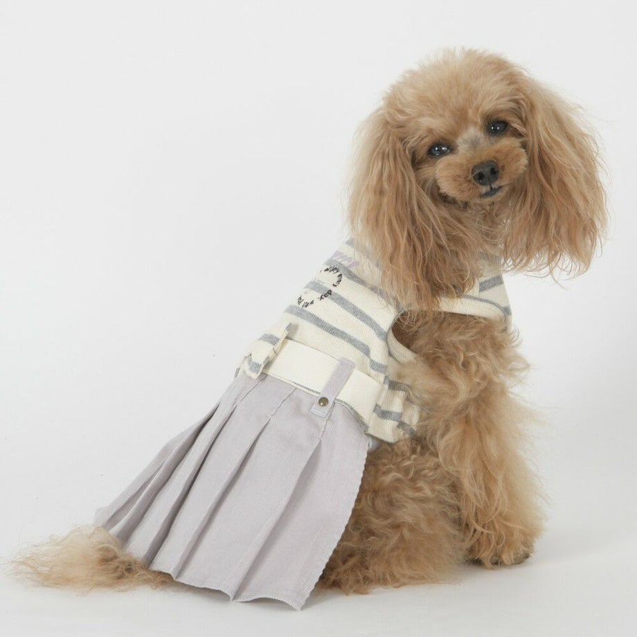 コーデュロイのプリーツ加工がおしゃれで可愛く、落ち着きがあるナチュラルカラーのボーダーを合わせる事により、シックで落ち着いた雰囲気に。