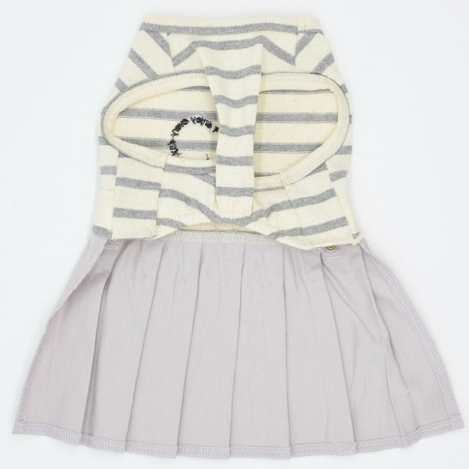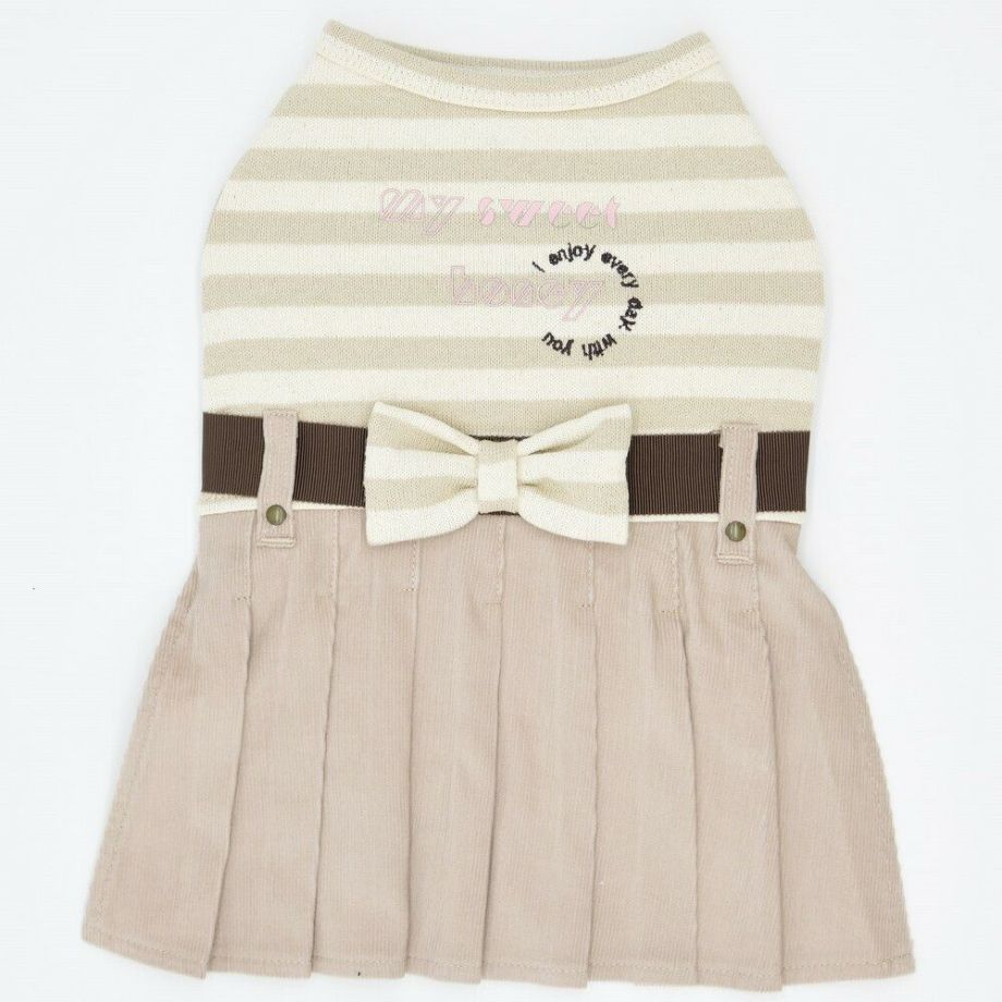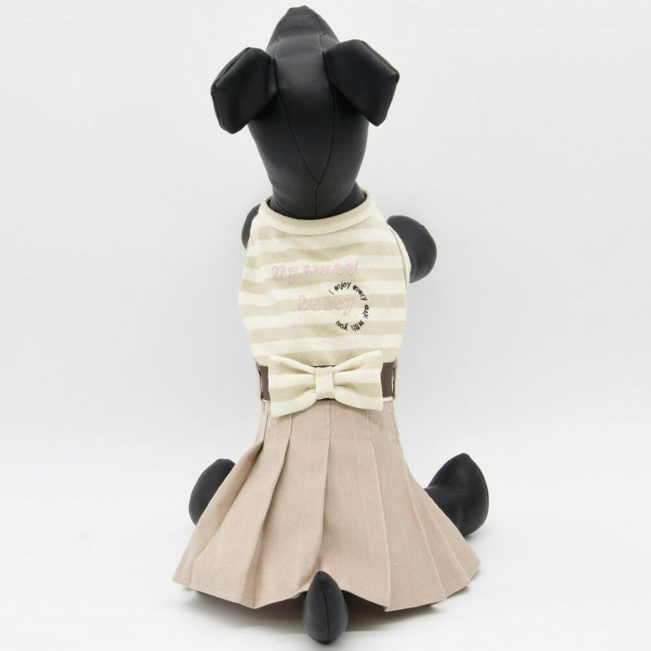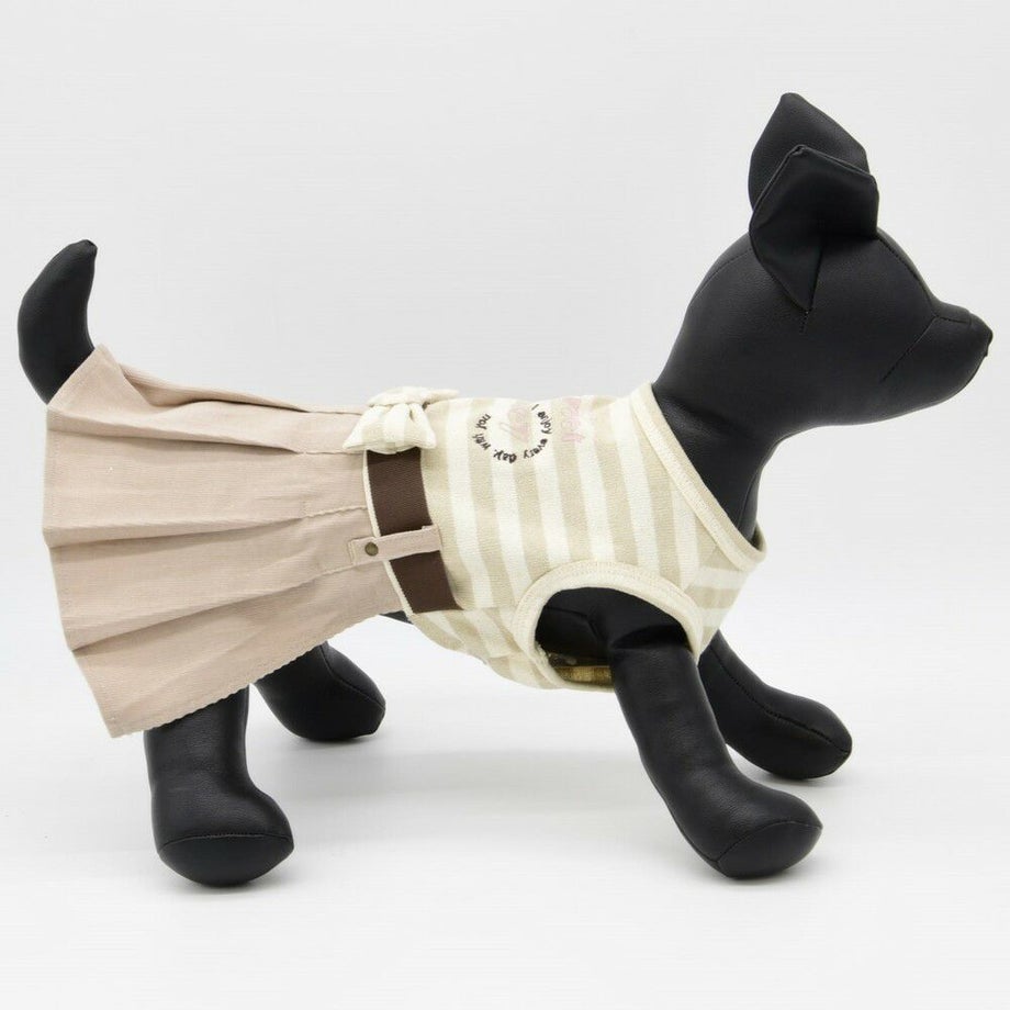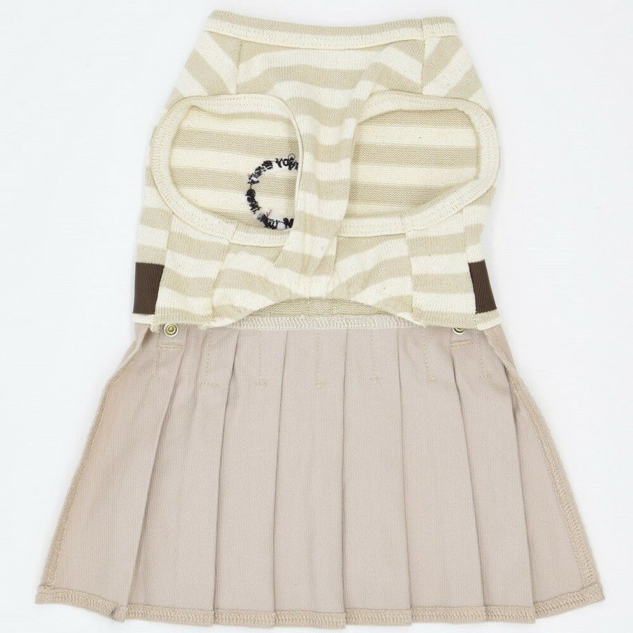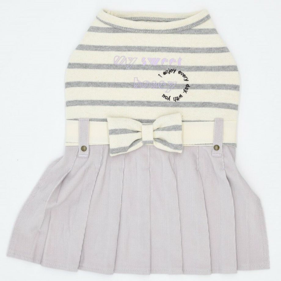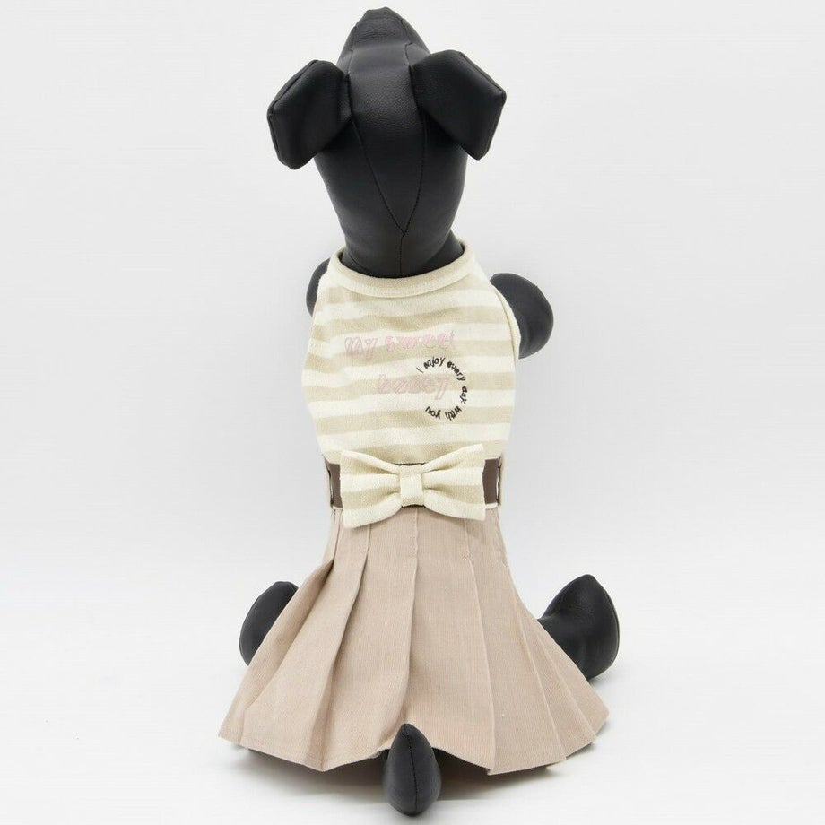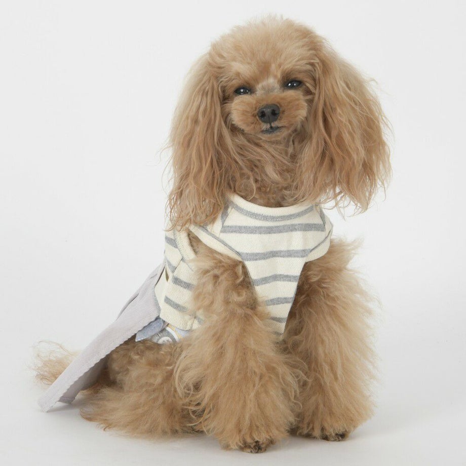 コーデュロイのプリーツ加工がおしゃれで可愛く、落ち着きがあるナチュラルカラーのボーダーを合わせる事により、シックで落ち着いた雰囲気に。