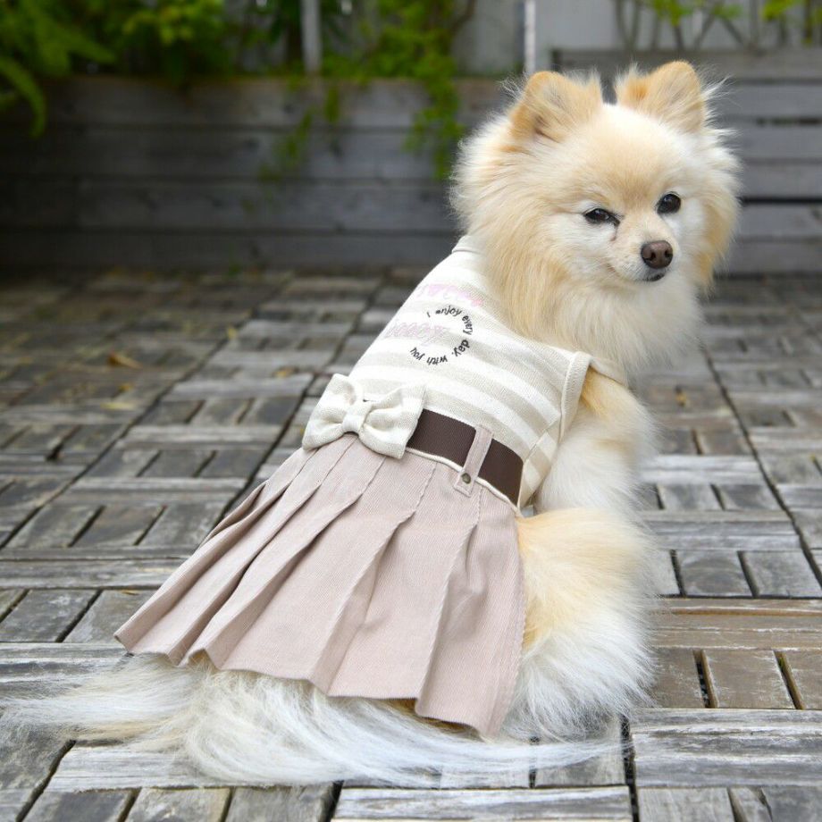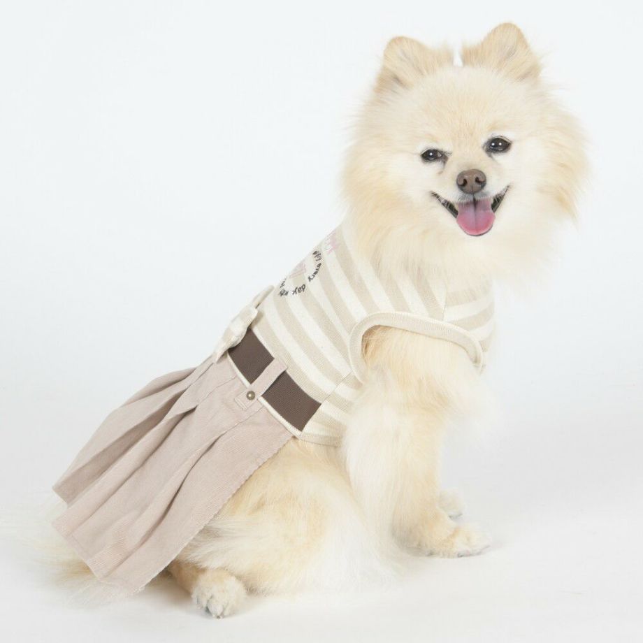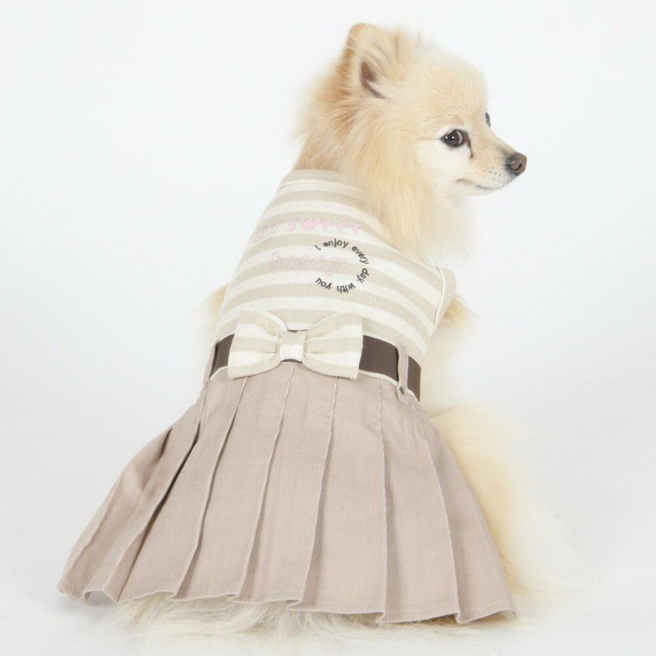 コーデュロイのプリーツ加工がおしゃれで可愛く、落ち着きがあるナチュラルカラーのボーダーを合わせる事により、シックで落ち着いた雰囲気に。